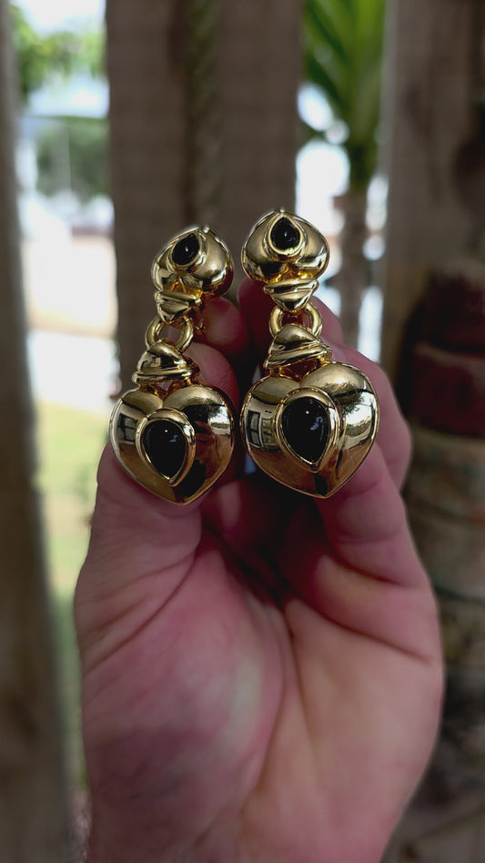 This large and striking pair of vintage 1990’s clip-on earrings captures that unmistakable bold statement style that defined late-20th-century fashion jewellery.