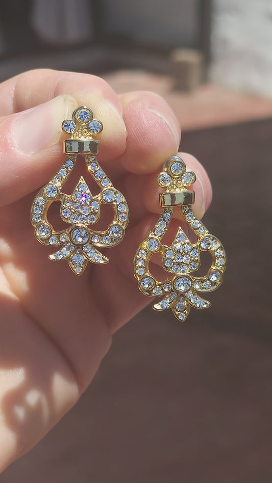 A beautiful pair of vintage costume designer earrings by Dick & Co., known for producing elegant, high-quality costume jewellery pieces with a strong focus on sparkle and m design.