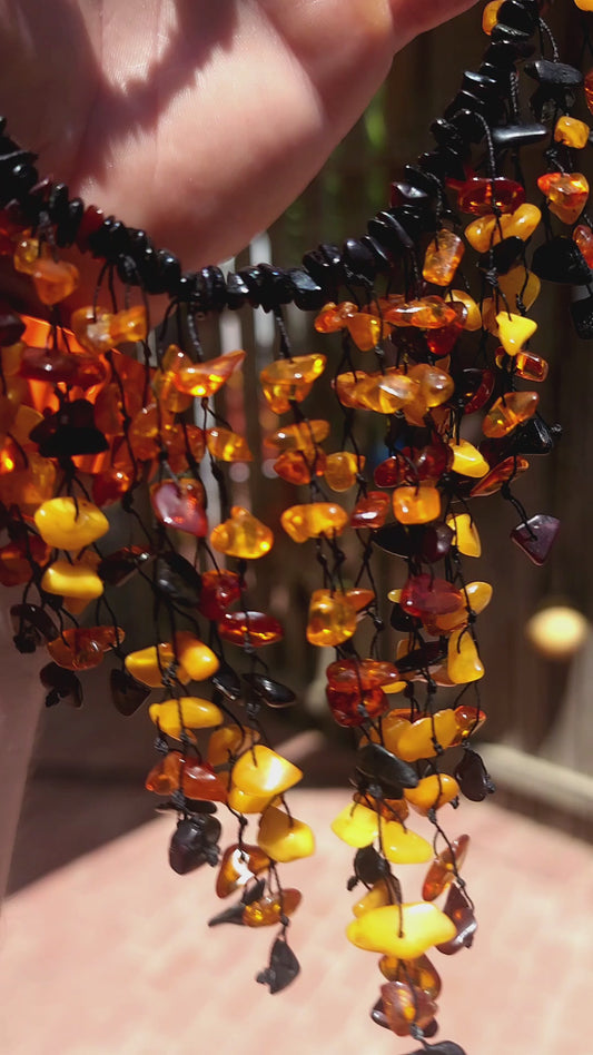 Handmade and gloriously bold, this chunky statement piece is crafted from natural Baltic amber chips.