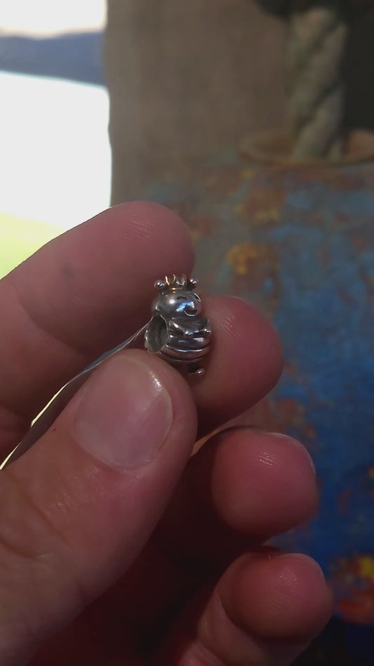 This retired P-a-n-d-o-r-a charm features the most charming little queen bee — crafted in solid sterling silver with a genuine 14ct yellow gold crown perched proudly on her head.