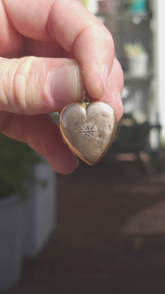 Antique Edwardian 9ct Rose Gold Puffed Heart Locket (c.1900).