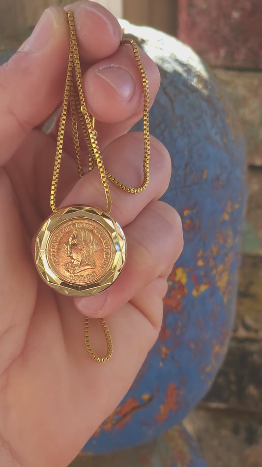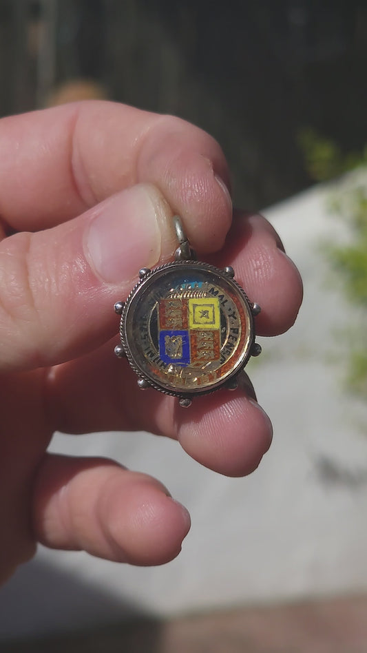 Antique Victorian Era c.1887 Sterling Silver & Enamel Queen Victoria Shilling Fob Pendant.