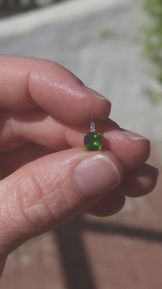 Small in size, MASSIVE in impact! This elegant sterling silver Tsavorite pendant.