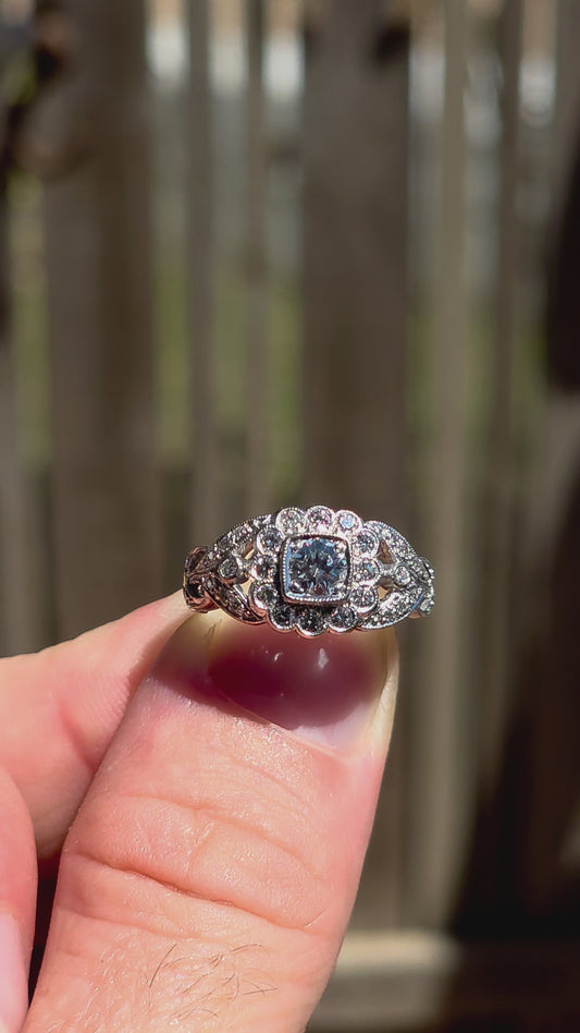 A truly breathtaking example of Art Deco-era elegance, this magnificent antique ring is crafted in solid 18ct white gold and set with an array of ultra-sparkly brilliant white diamonds that capture the light from every angle