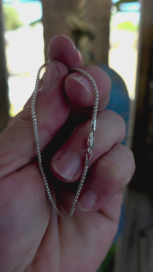 This elegant unisex bracelet is crafted in solid sterling silver and designed in the classic popcorn link chain style — a beautifully fluid construction made up of tightly interwoven rounded links that create a soft, textured surface.