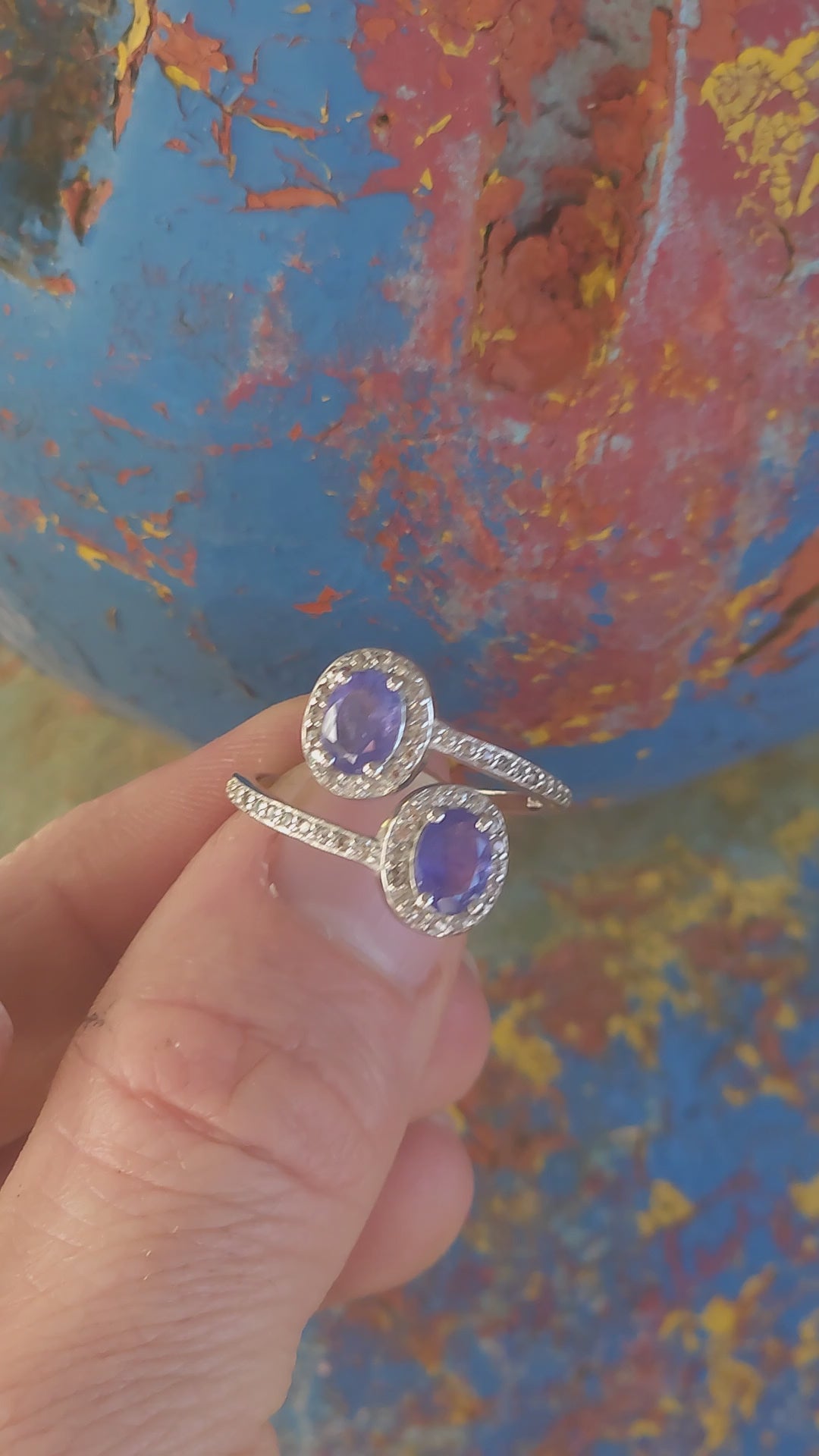 Measurements :(Large ring size )The ring measures as a size T and half as per ring measure stick , slightly adjustable with the open design.Each of the tanzanite gemstones measure 7mm x 5mm.The ring with a weight of 3.7grams.
