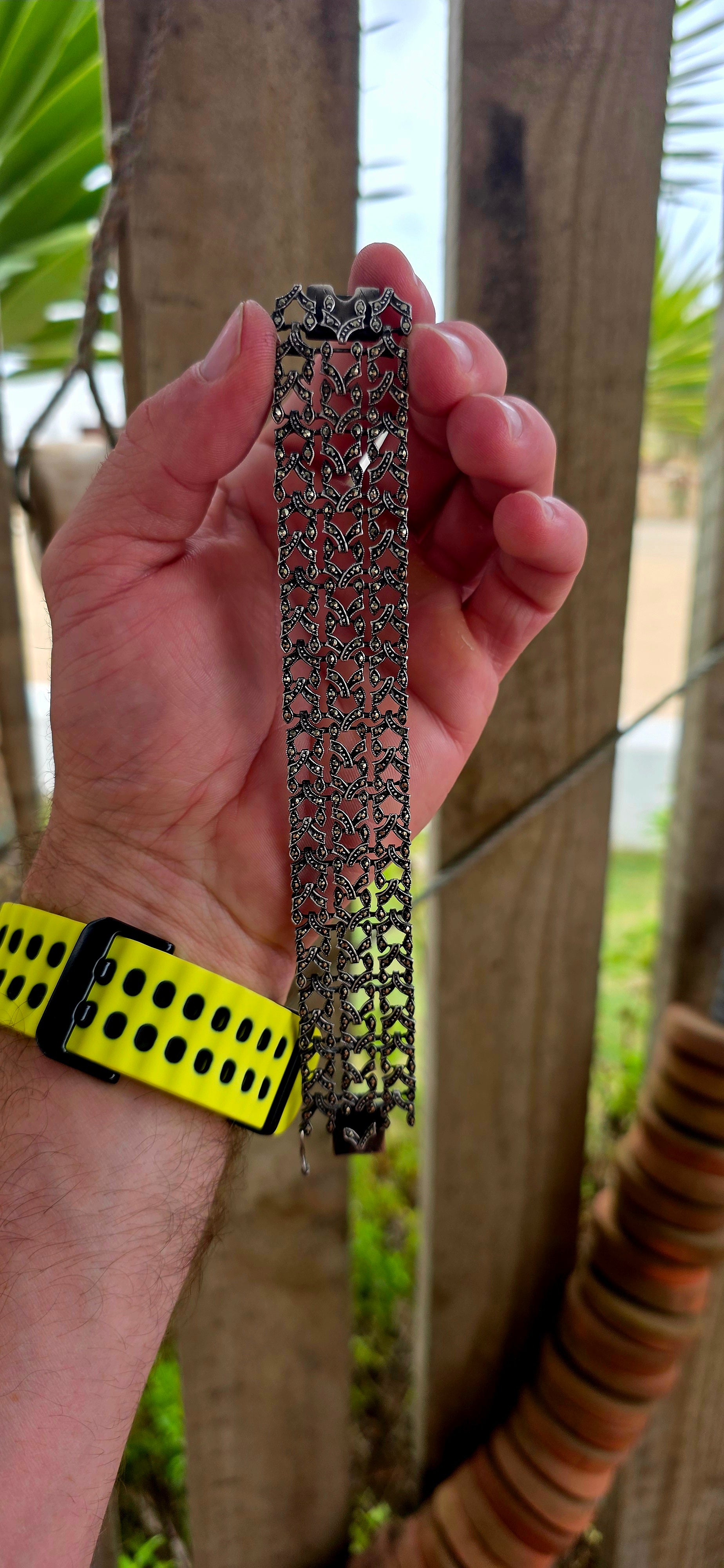 Measurements : The bracelet with a length of 17.5 cm x 2.5cm wide.The bracelet with a weight of 38.5 grams.