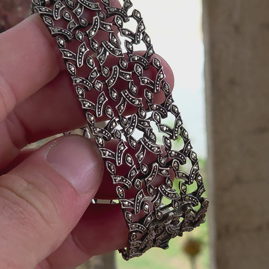 Authentic Art Deco marcasite bracelets with this level of fine piercing and articulation are becoming increasingly sought after by collectors. The craftsmanship required to produce such intricate openwork designs makes pieces like this particularly special.