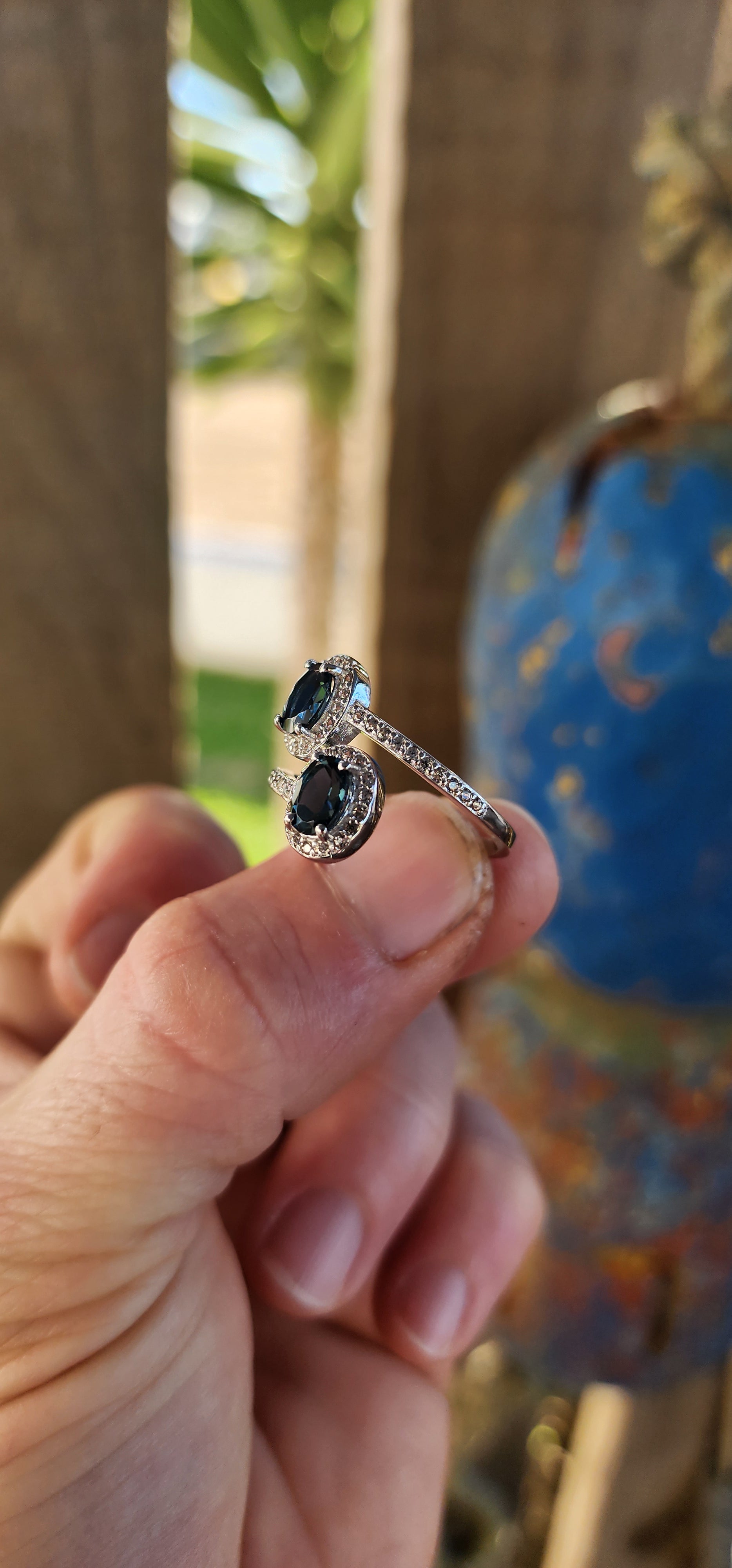 Elegant dialogue of light and depth with this striking Toi et Moi (You and Me) bypass ring. Crafted in radiant sterling silver, its design embodies a graceful embrace of balance and eternal connection.