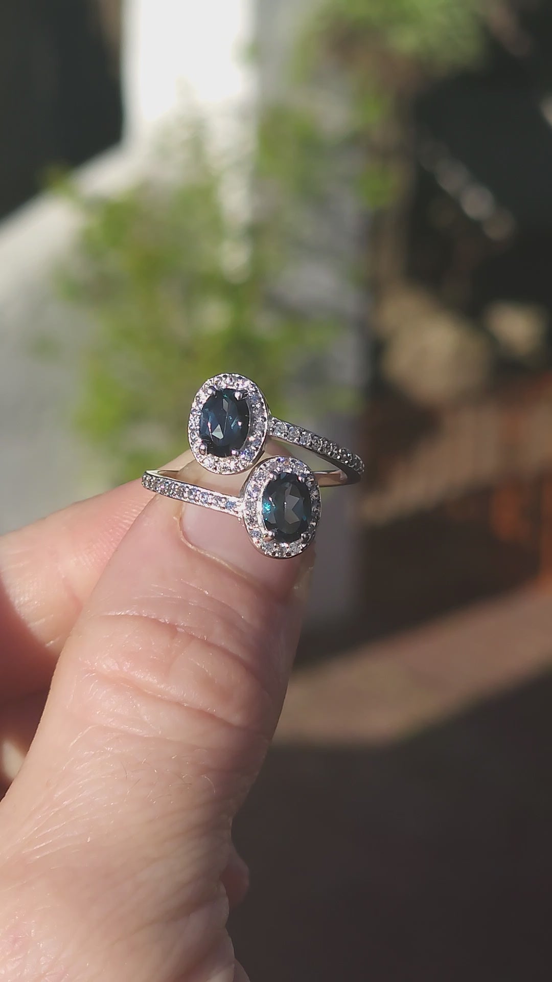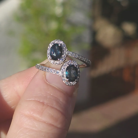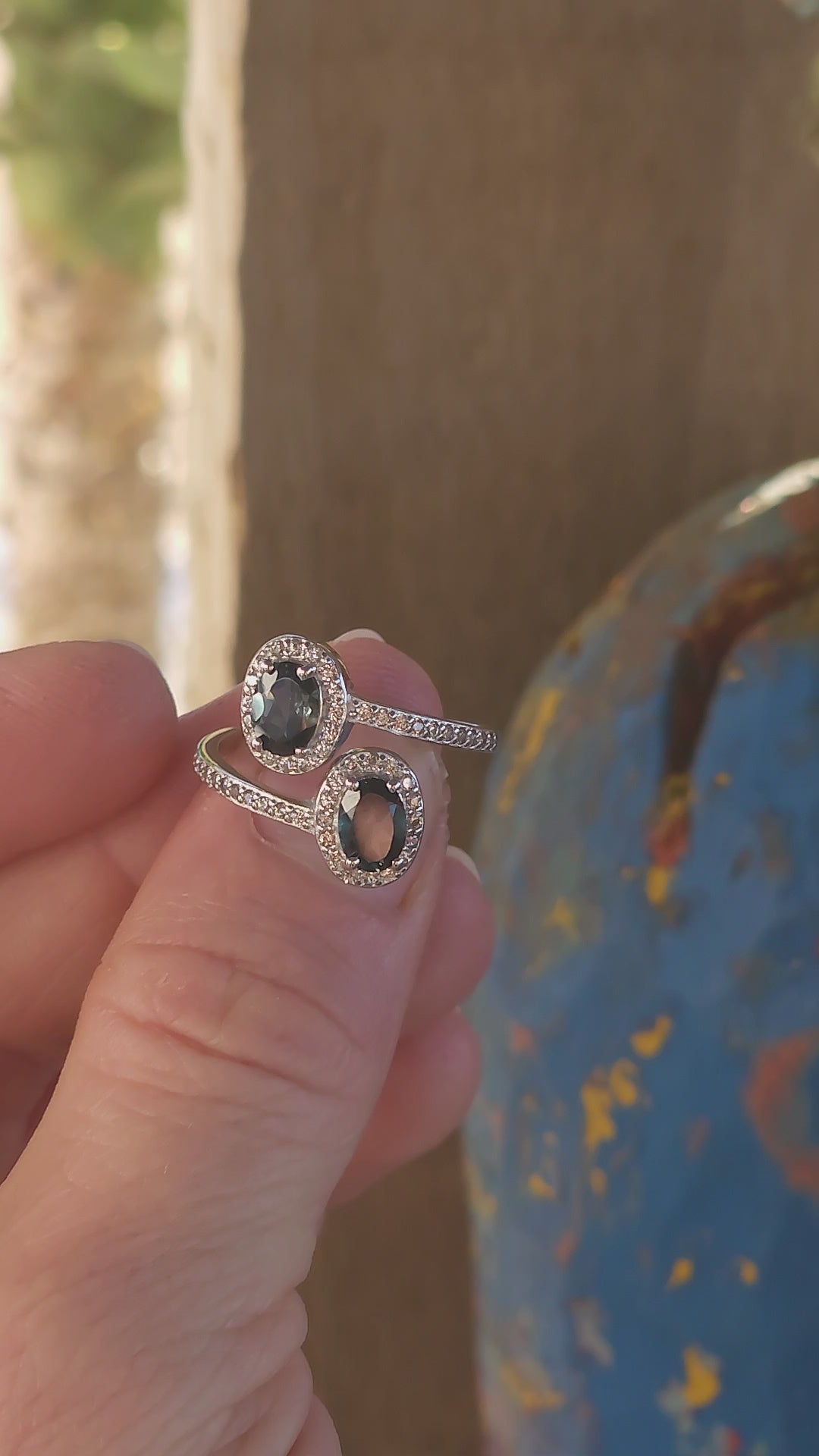 A Midnight Waltz — Toi et Moi Bypass Ring Featuring London Blue Topaz.