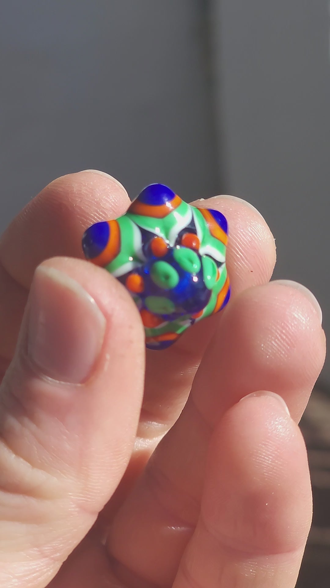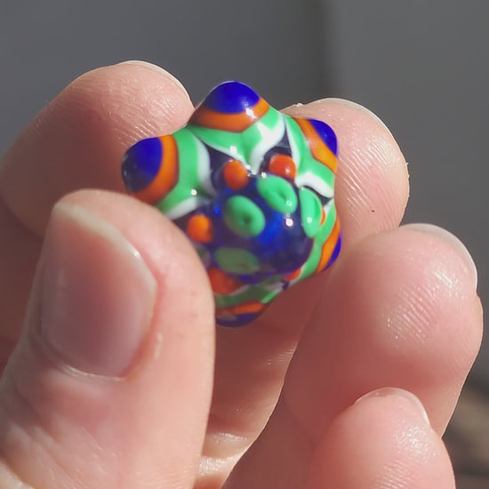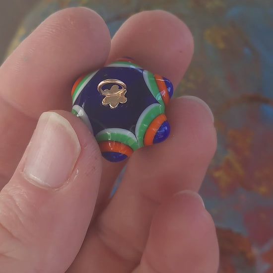 A true burst of color and imagination! This unusual and funky artisan-made pendant has been crafted using the age-old lampwork glass technique, resulting in a miniature piece of wearable art.