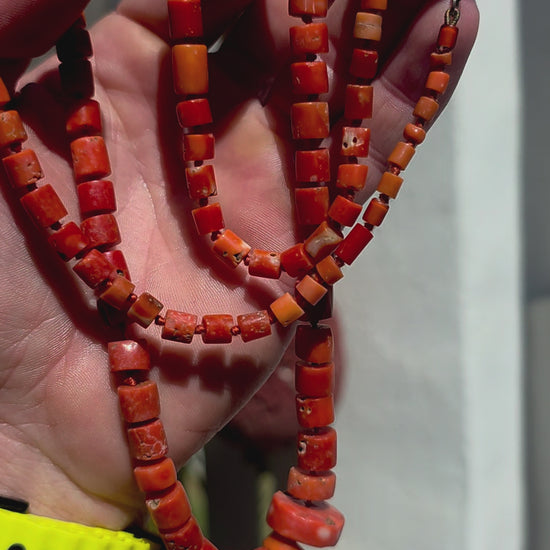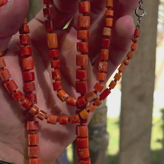 A truly exceptional and increasingly scarce find — this beautiful antique necklace is crafted from genuine Sciacca coral, celebrated for its rich sunset orange tones and historic origins in the Mediterranean.