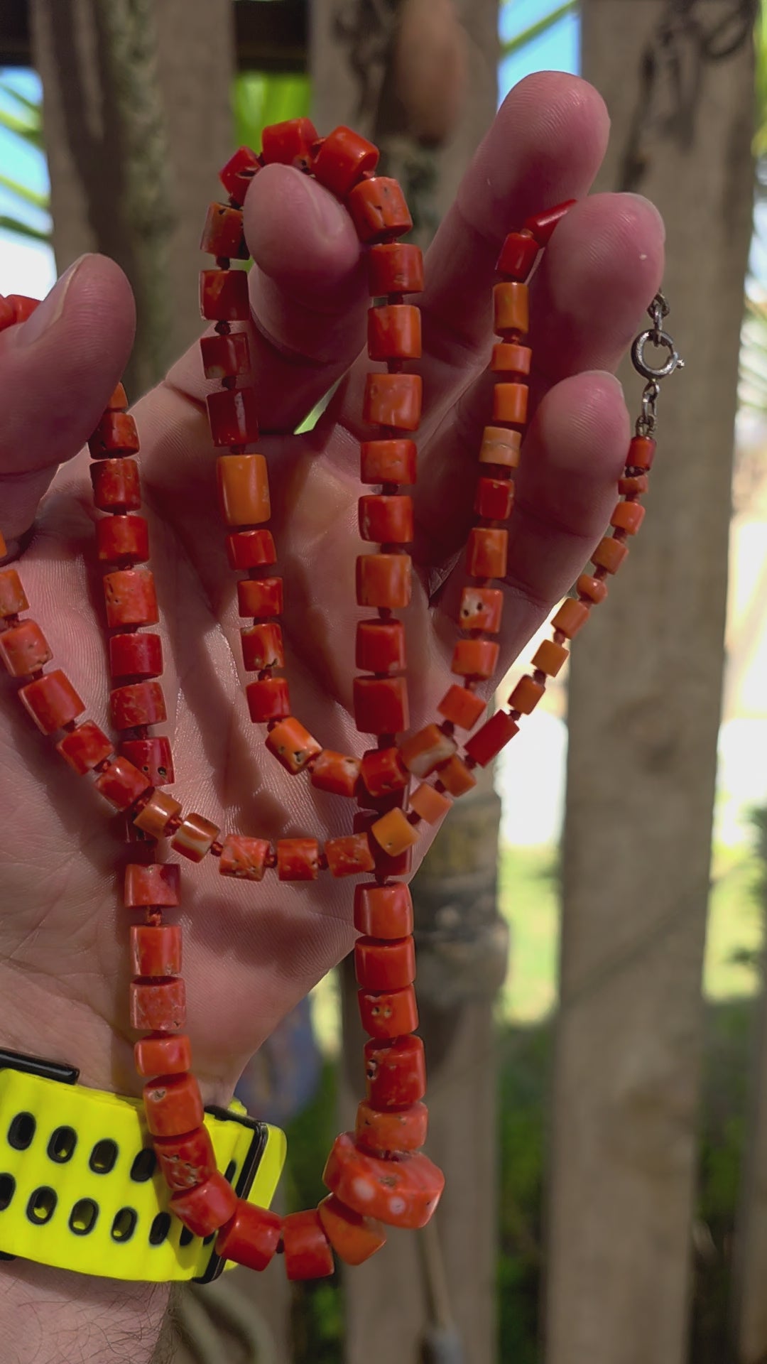 Measurements : The necklace with a length of 76 cm.The largest coral bead measures 1.7cm in diameter and smallest coral bead 4mm in diameter.The necklace with a weight of 57.3 grams.