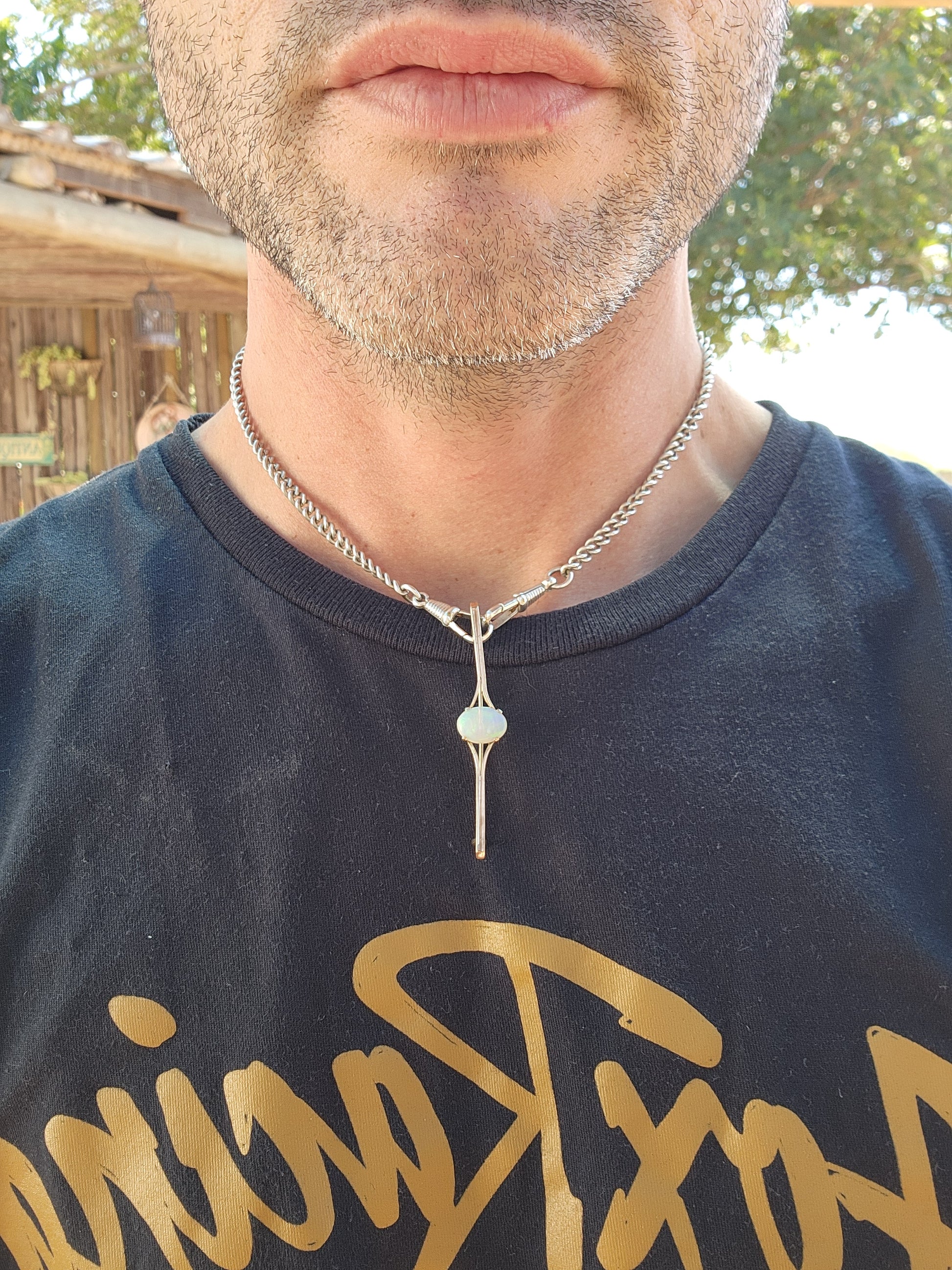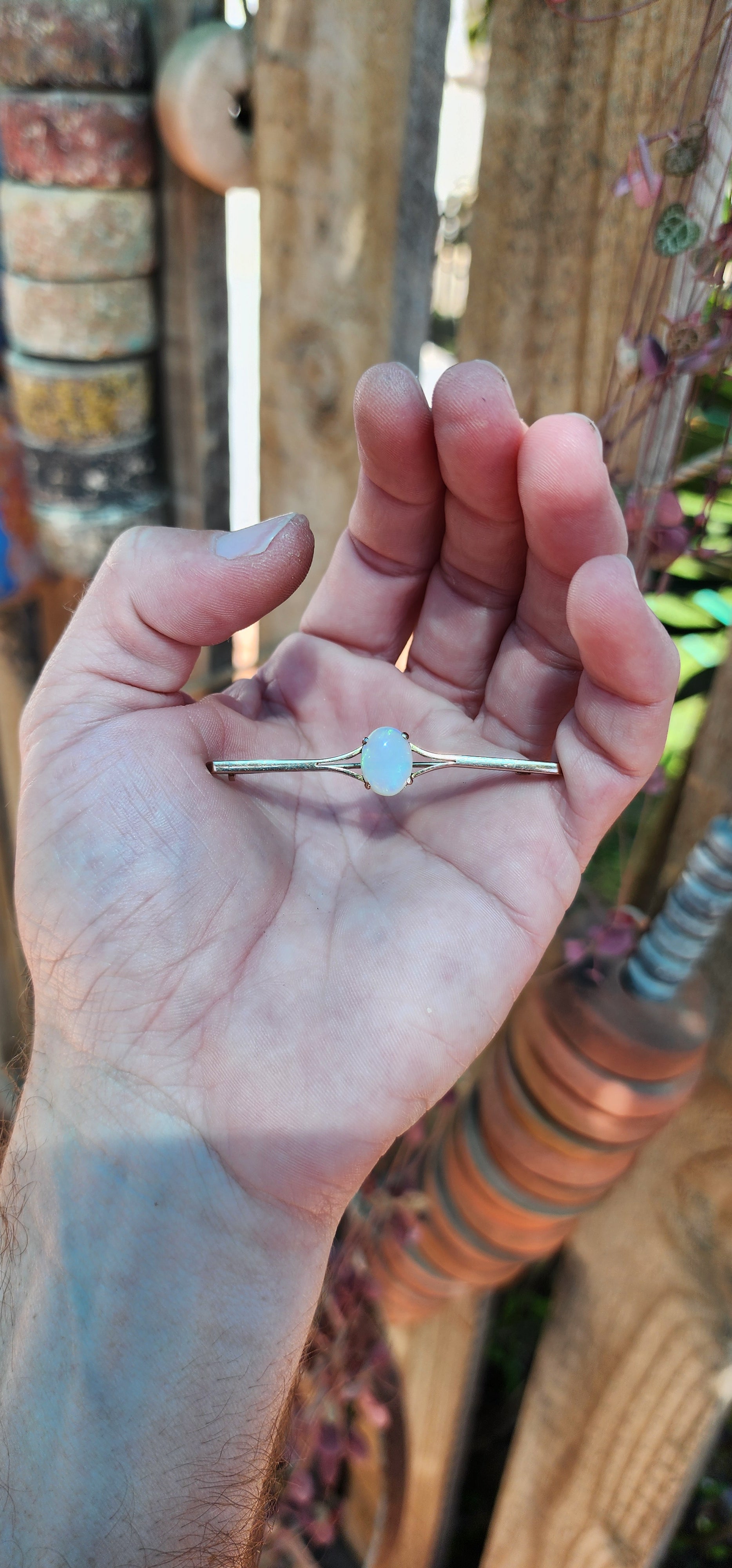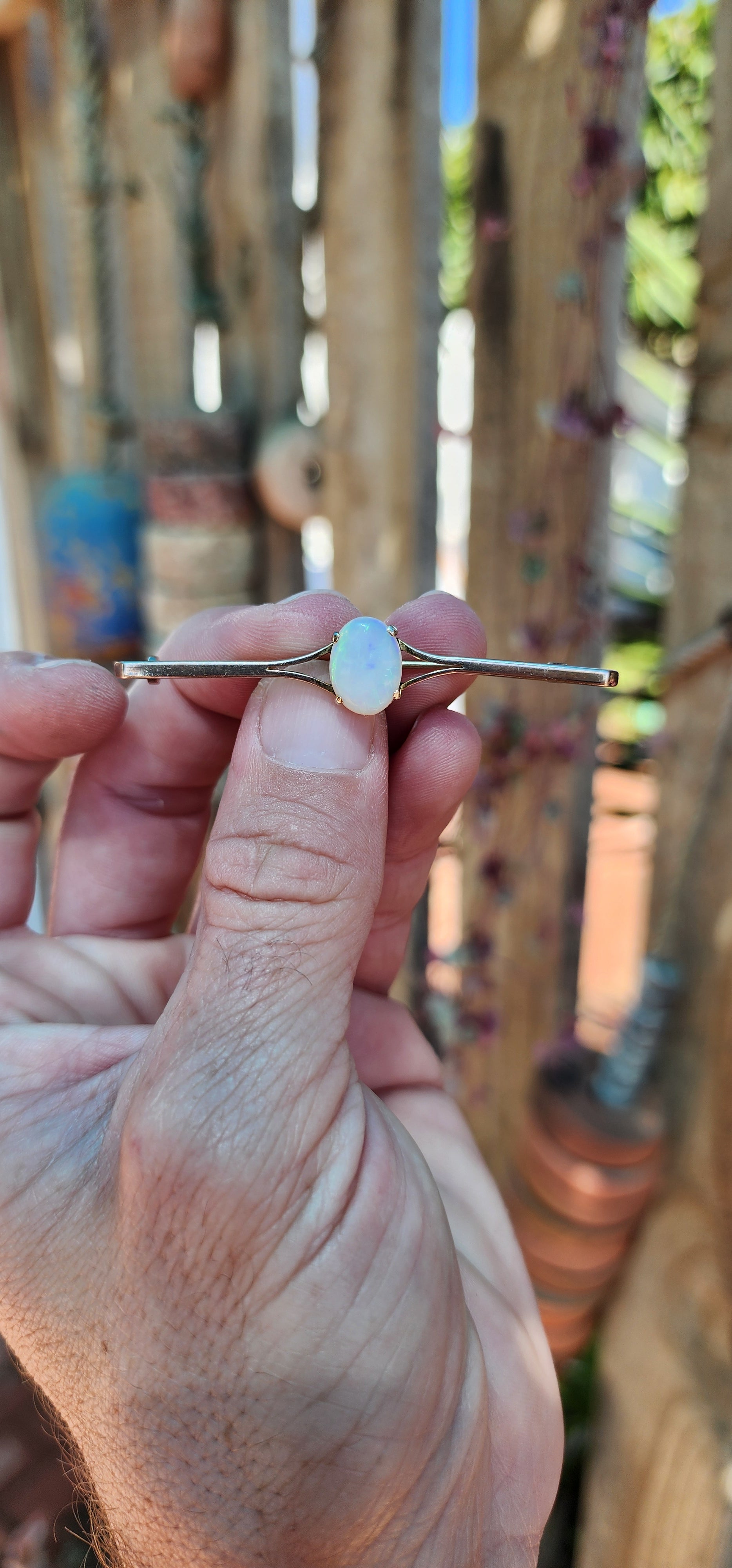 Measurements : The brooch measures 6.2cm in length x 1.1cm .The Opal Cabochon measures 1.1cm x 9mm.Brooch has an total weight of 4grams.