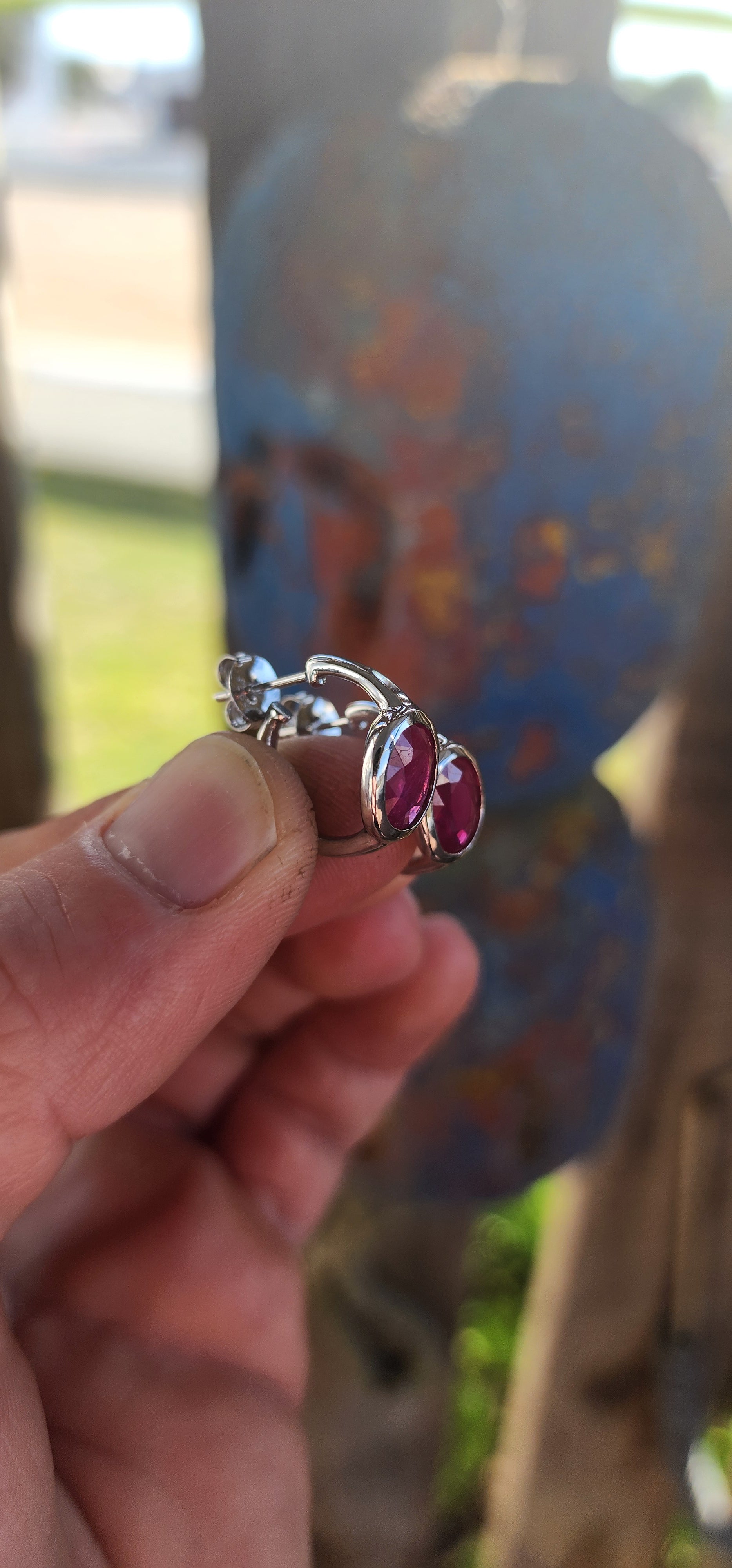Measurements : Each earring measures 1.6cm in diameter.Each of the rubies measure 9mm x 7.50mm.The earrings with a combined weight of 4.8grams.