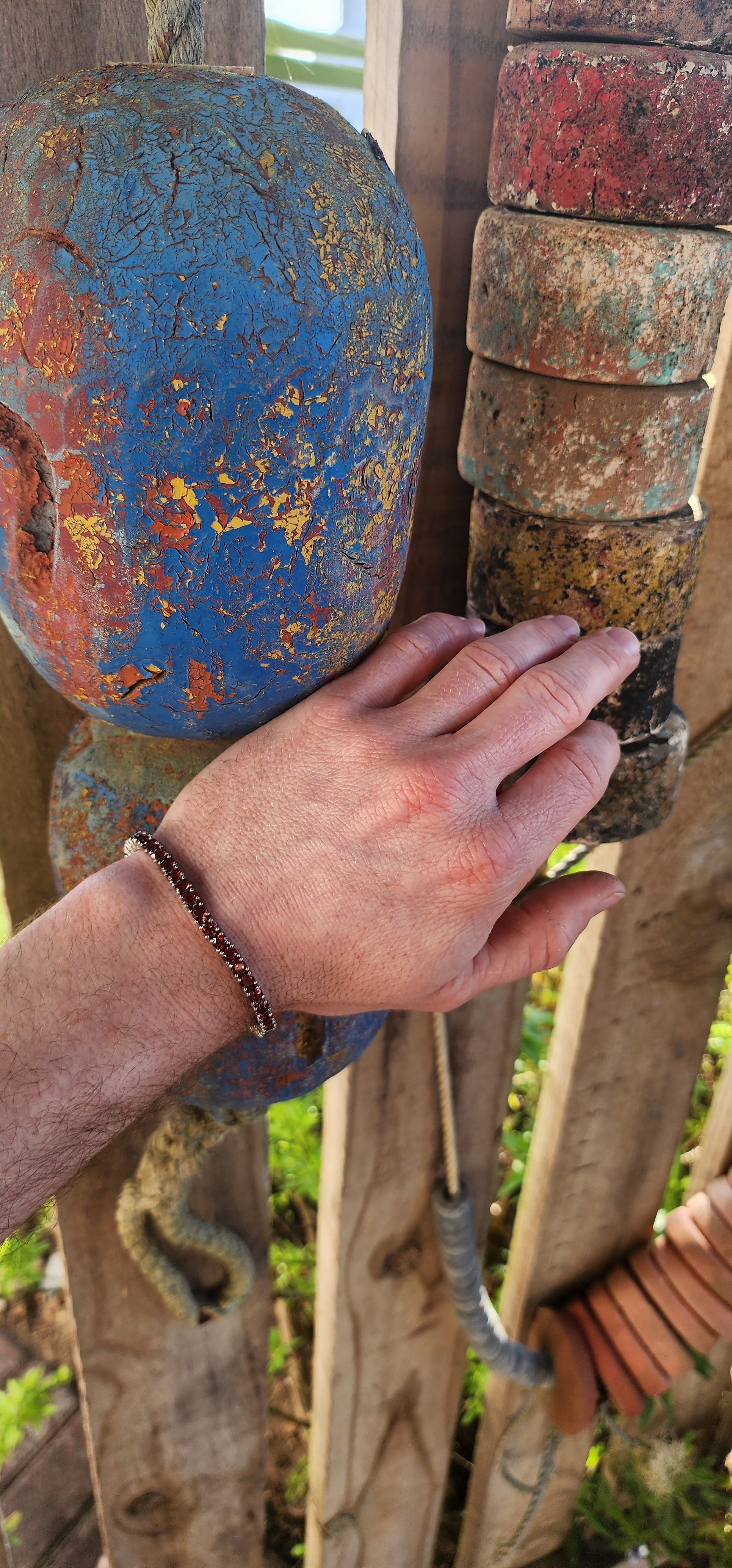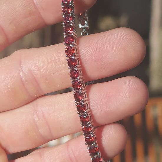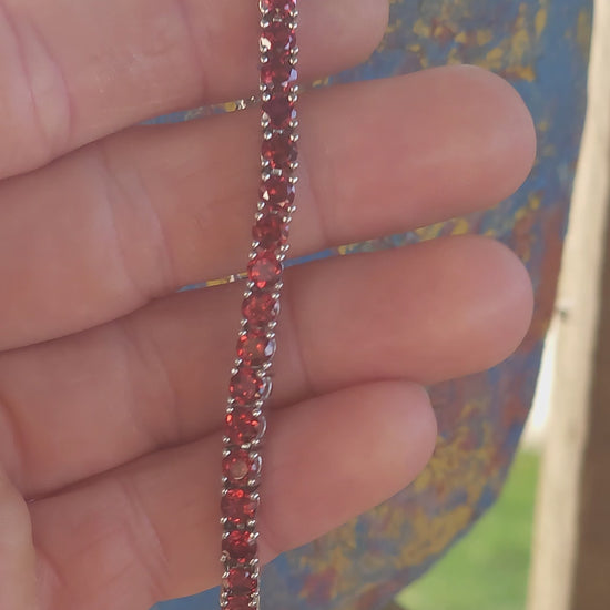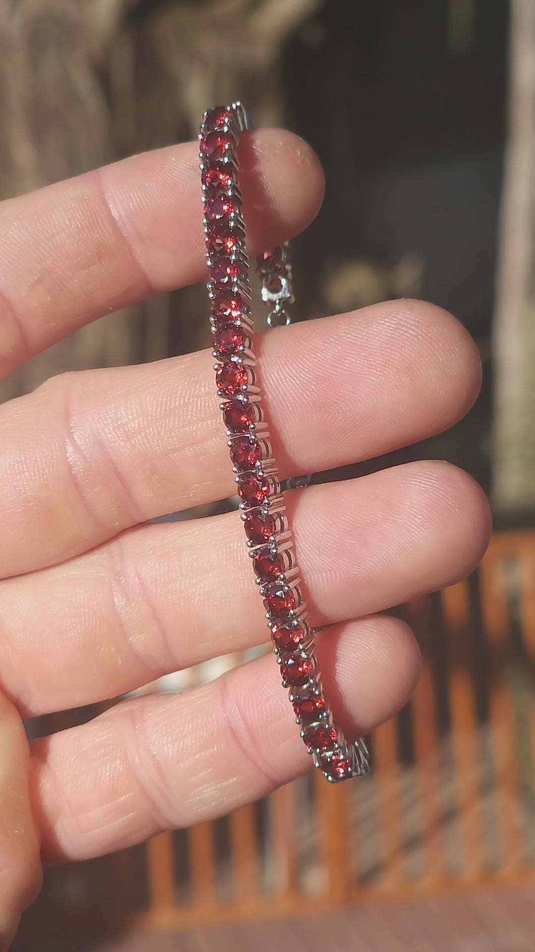 Enchanting Sterling Silver & Garnet Unisex Tennis Bracelet.