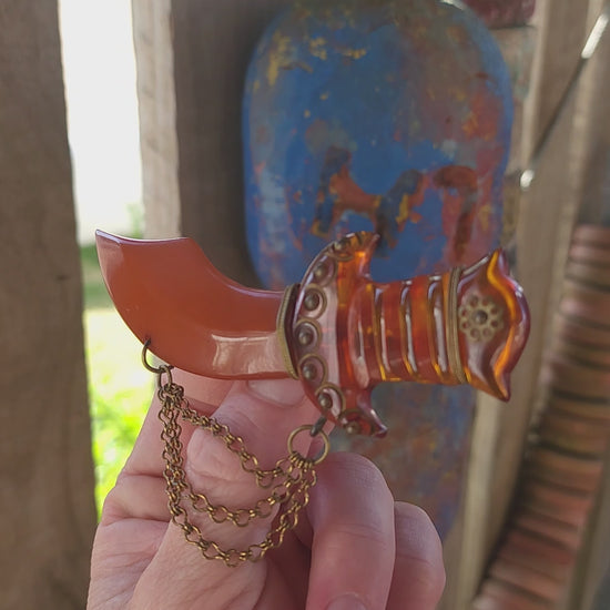 RARE BAKELITE TREASURE – Art Deco Persian Dagger Brooch (c.1930s).