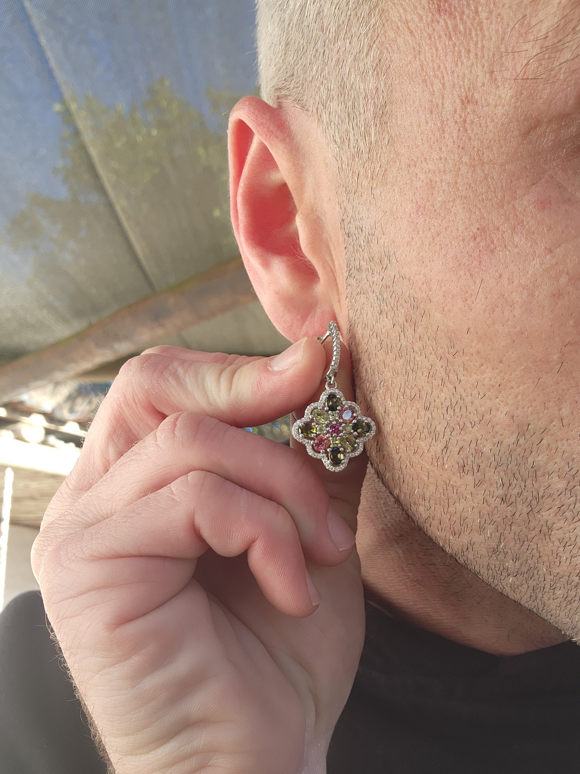 The push-in earrings are fitted with saftey leverbacks.