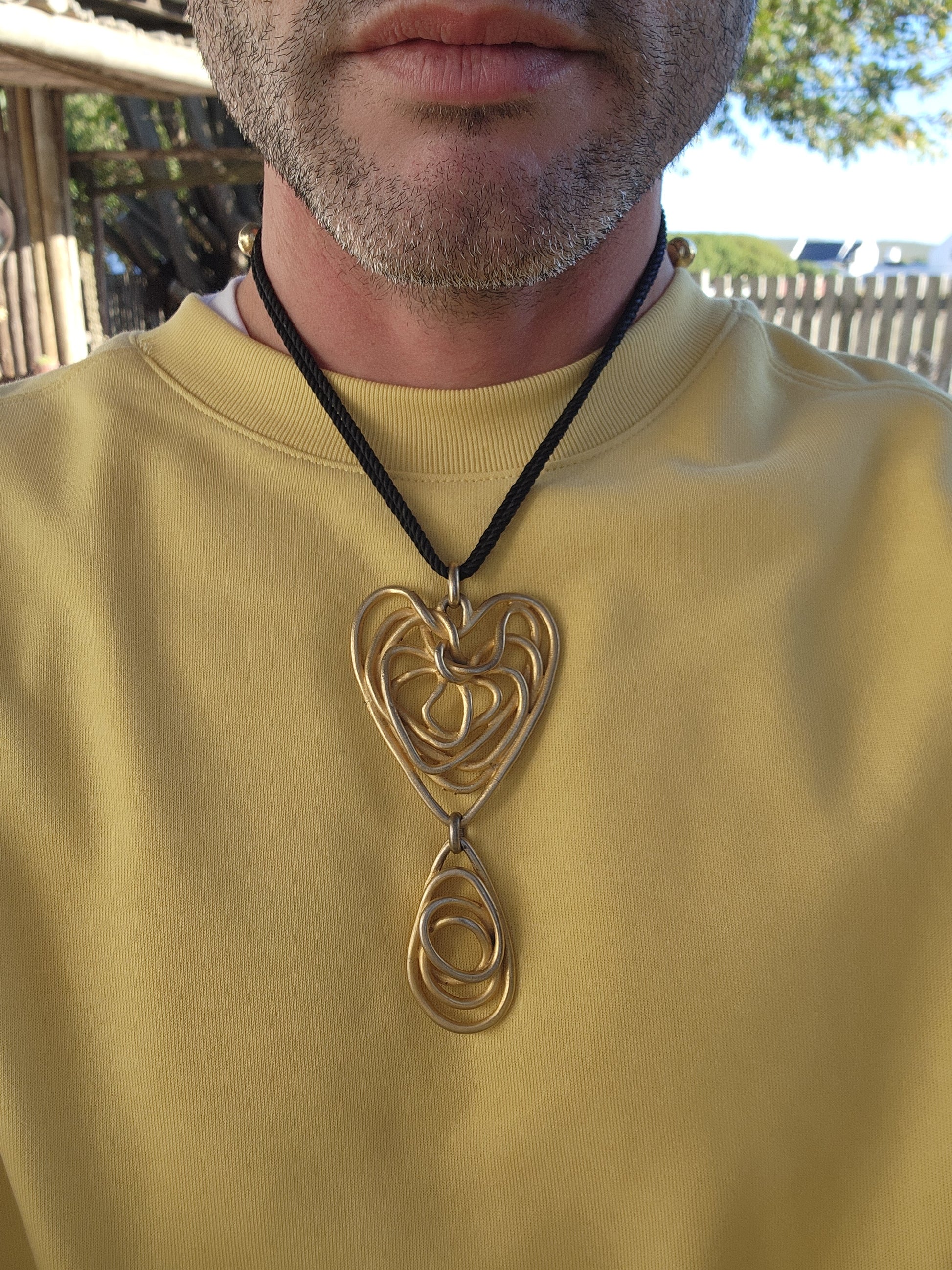 Massive wired spiral Heart "Fantasy" pendant/necklace designed by Balenciaga in the 1980’s.