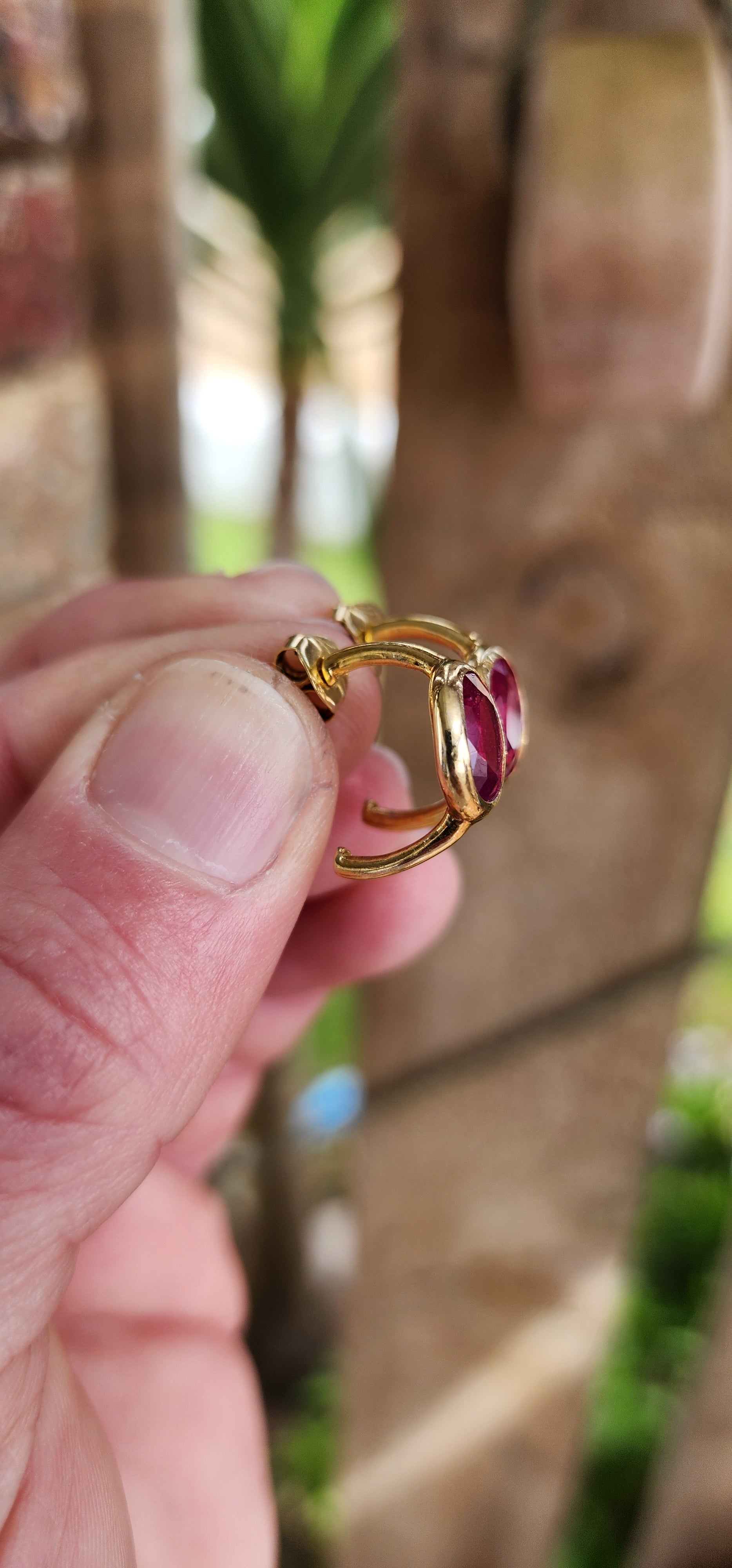 These are just fabulous !! Modernist in style pair of Sterling Silver with 18ct Yellow Gold plating half hoop stud earrings - Each earring bezel/tube set with a generous in size Oval faceted cut Red Rubellite Tourmaline Gemstone.