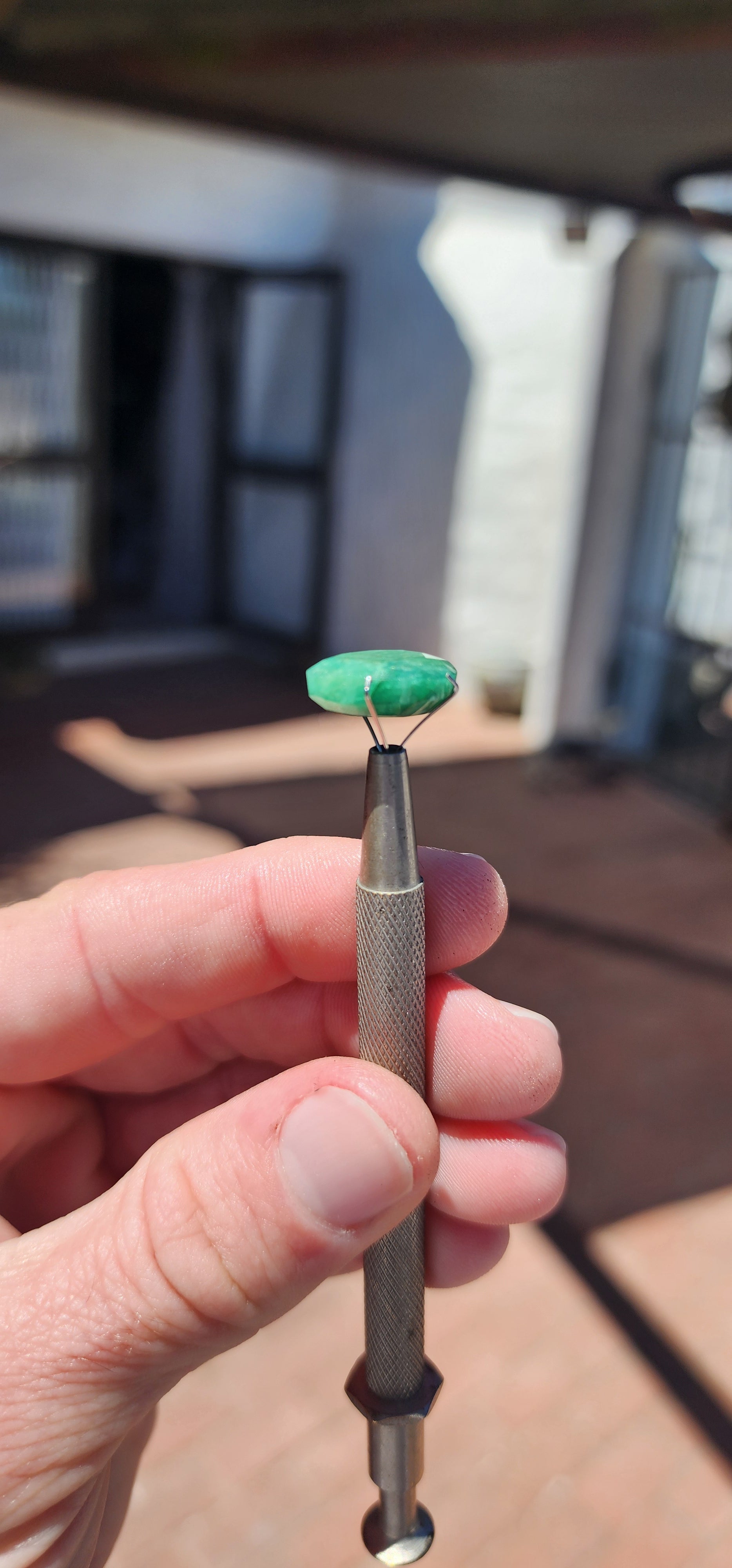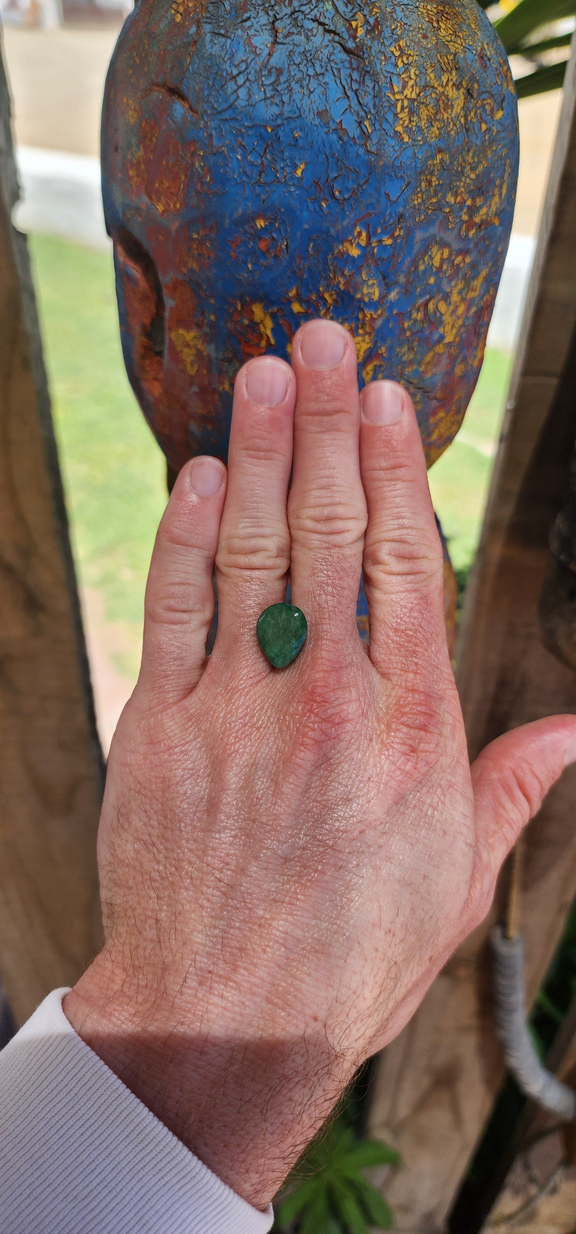 Color: The gemstone displays a deep green hue, characteristic of Zambian emeralds, with slight variations in tone due to its natural formation.