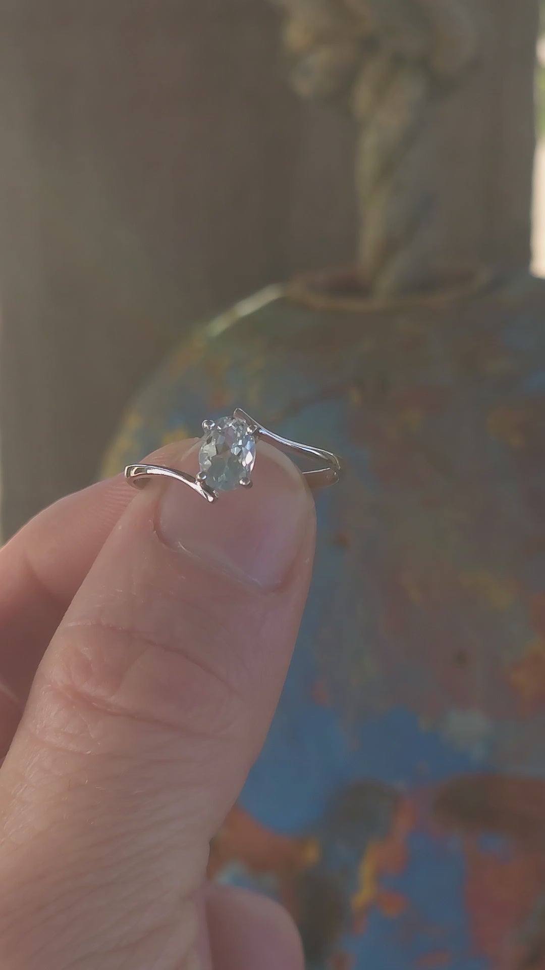 Measurements : ( Large ring size )The ring measures as a size V as per ring measure stick.The Aquamarine gemstones measures 7mm x 5mm.The ring with a weight of 2.3grams.