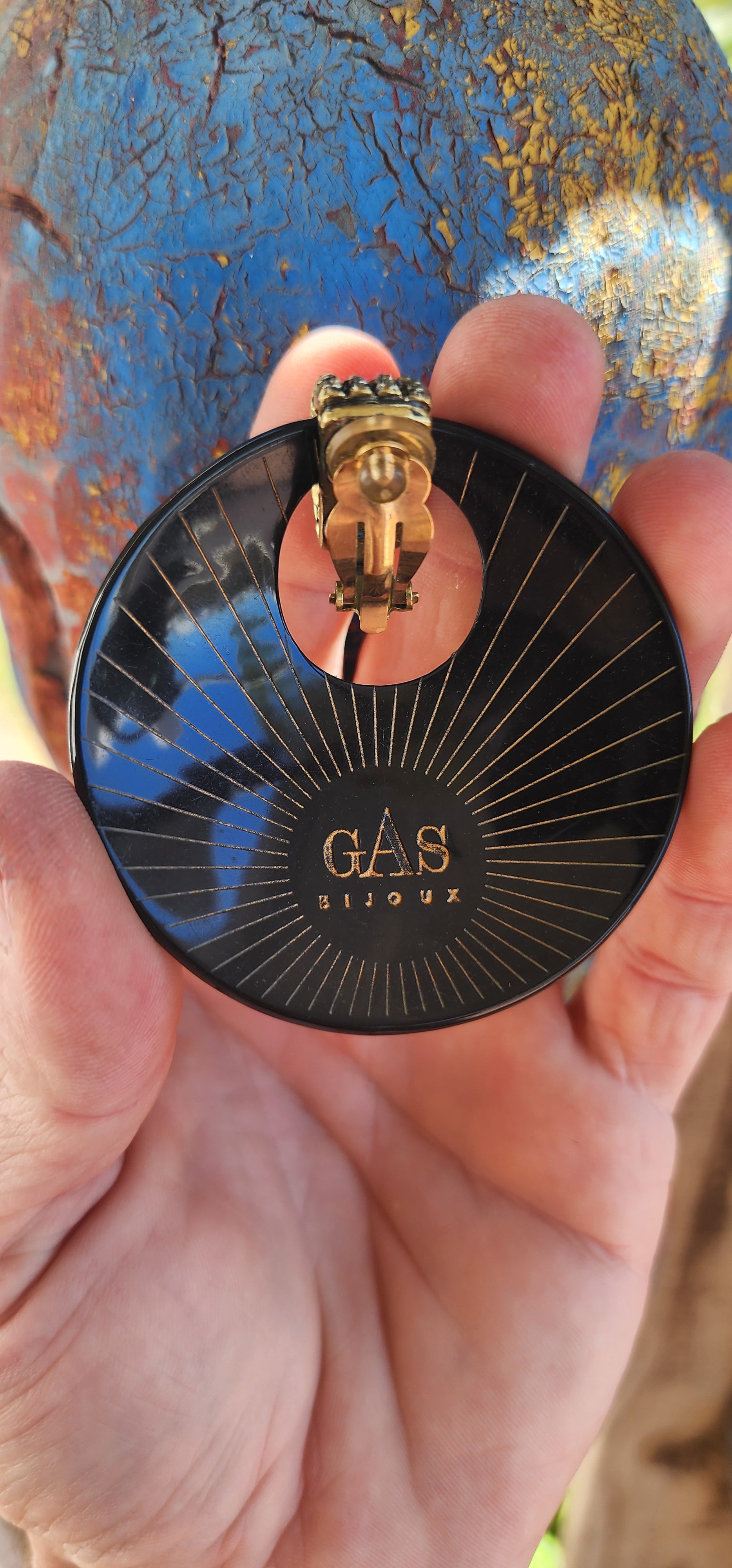 Oversized pair of French Designer costume clip-on earrings made by the very well known Parisian Jewellery design house Gas Bijoux and signed accordingly.