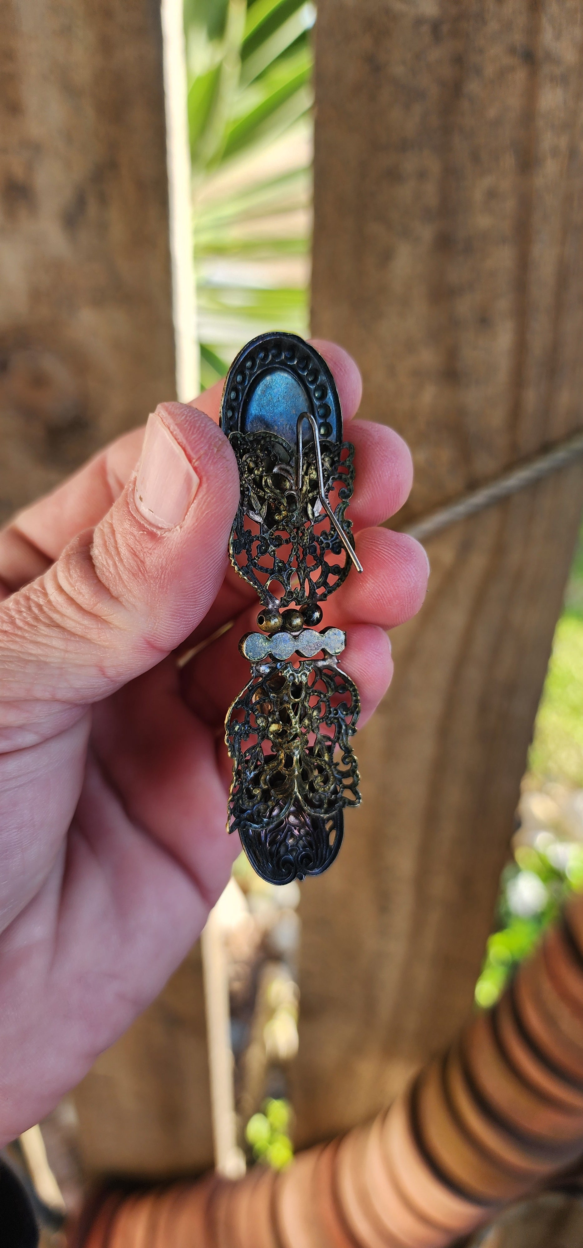 Measurements :Each earring with a drop of 8.1cm x 2.5cm wide.Earrigs with a combined weight of 19.2grams.