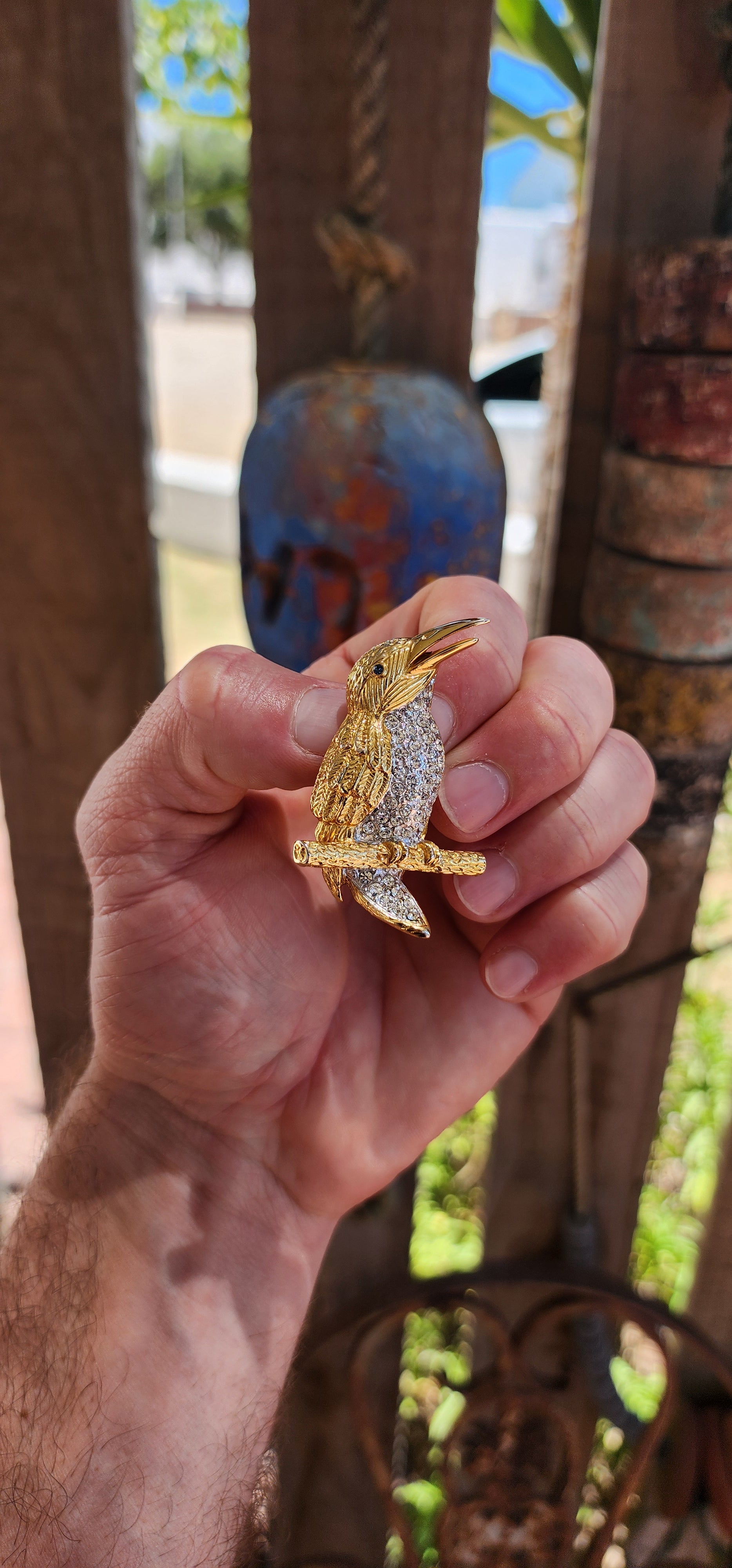 Bird brooches were a particularly popular motif in mid-century and late 20th-century costume jewelry, symbolizing freedom, beauty, and grace. The kingfisher, with its vibrant colors and sharp, regal stance, is the ideal subject for a Cardin piece—bold, striking, and undeniably sophisticated.
