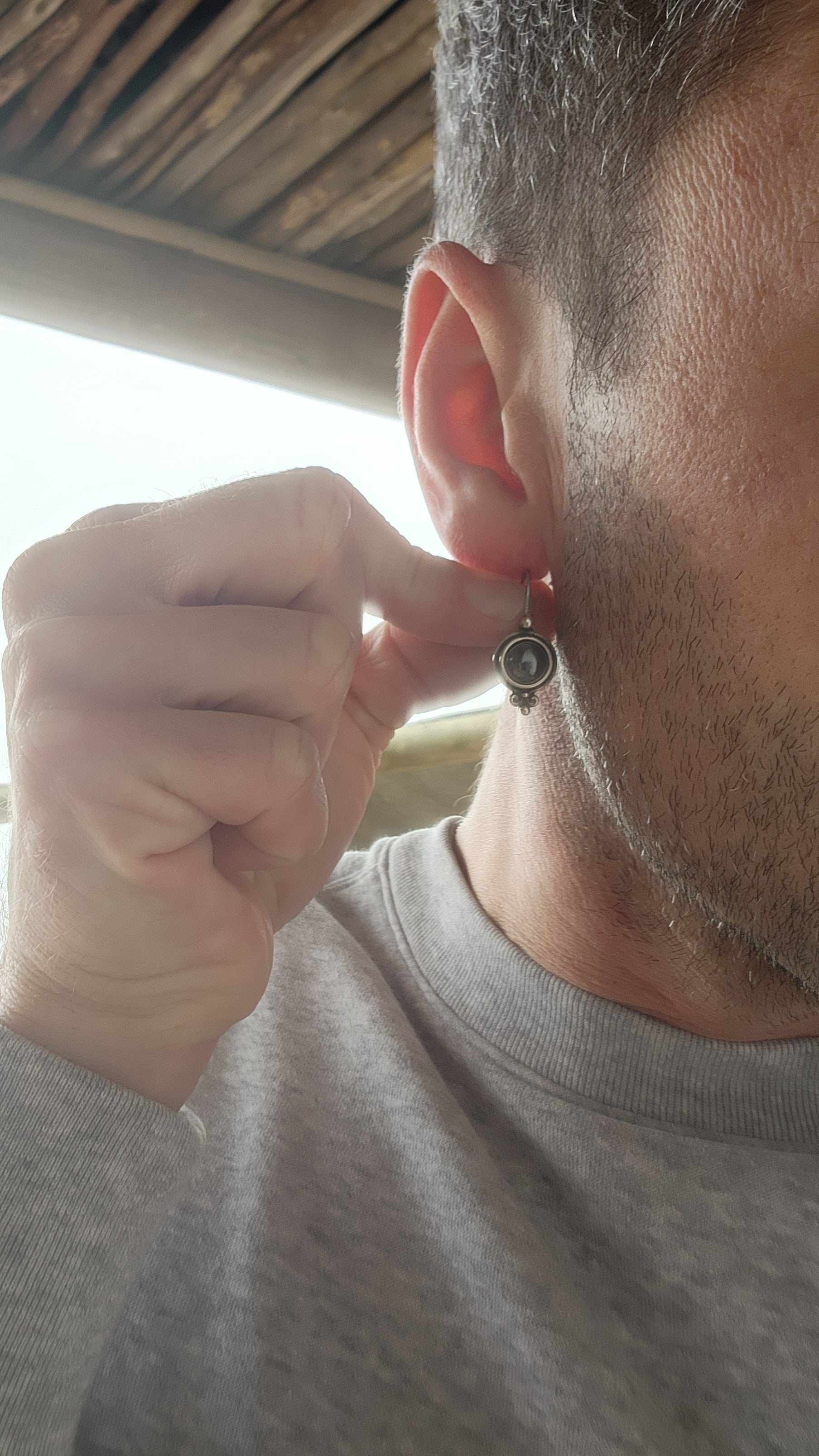 Measurements :Each earring measures 1.8cm x 1.2cm excluding the shepherd hooks.Each of the hematite cabochons measure 7.90mm in diameter.Earrings with a combined weight of 5.1grams.