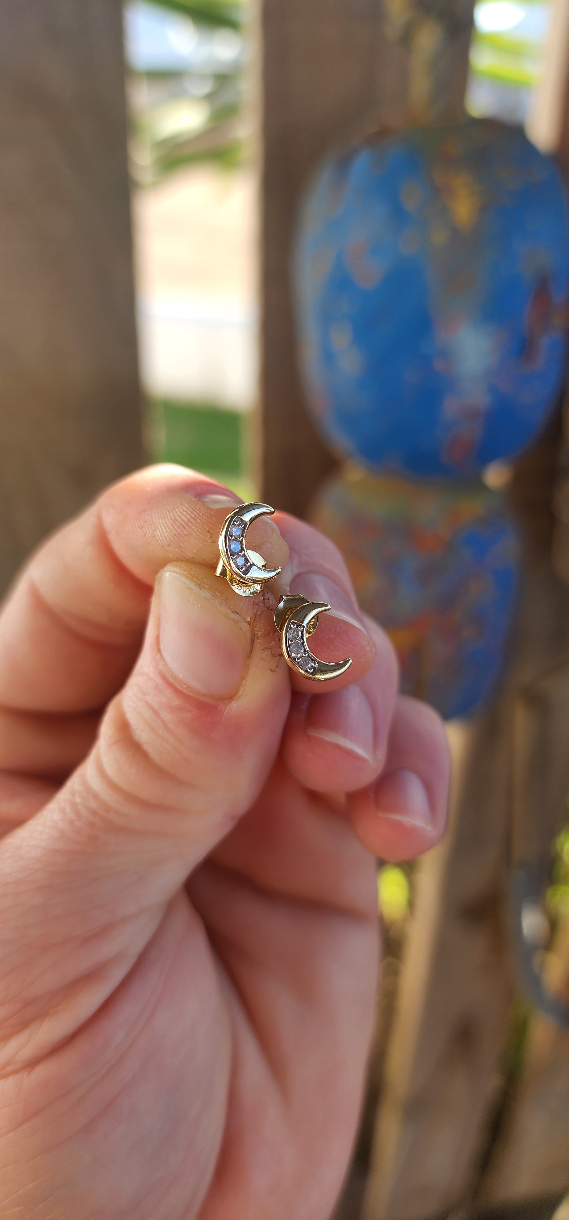 Petite yet brimming with cosmic charm, these enchanting stud earrings are like tiny kisses from the night sky itself!