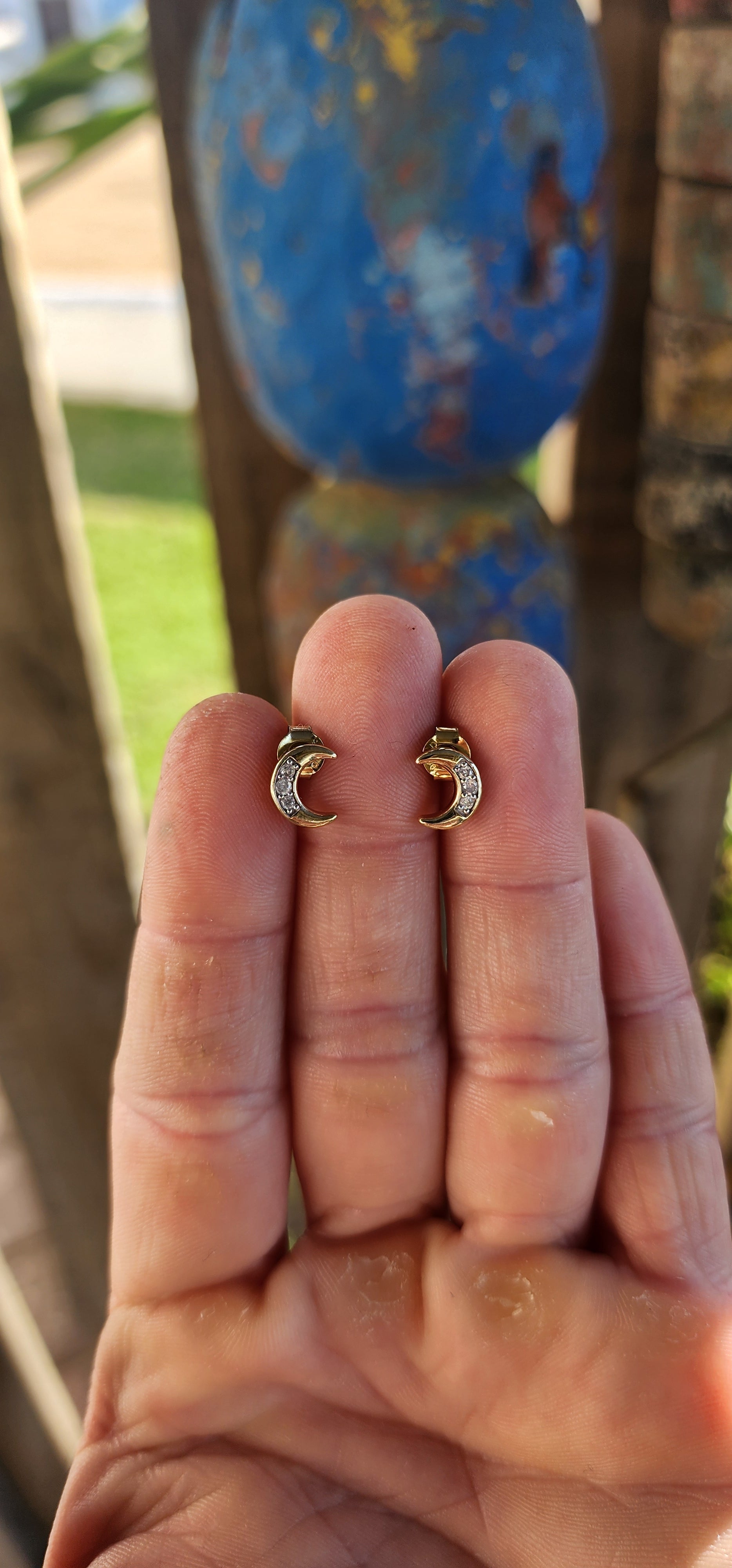 Nestled along the arc of each golden crescent are three sparkling round-cut diamonds, like little stars caught mid-dance. These diamonds don't just add a glittering touch — in symbolism, three is the number of harmony, wisdom, and the magical cycle of life: birth, life, and rebirth.