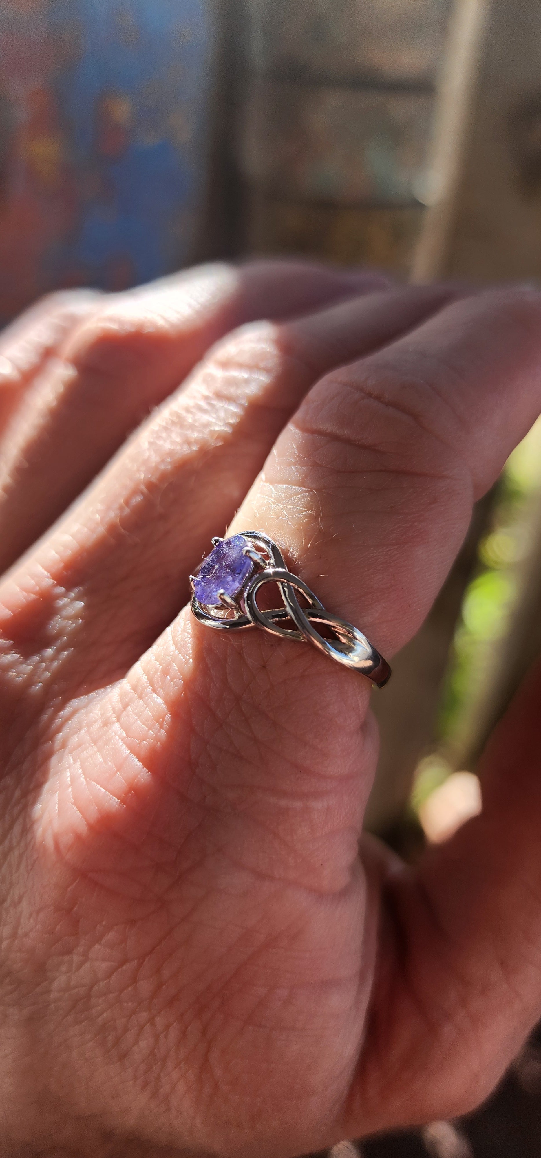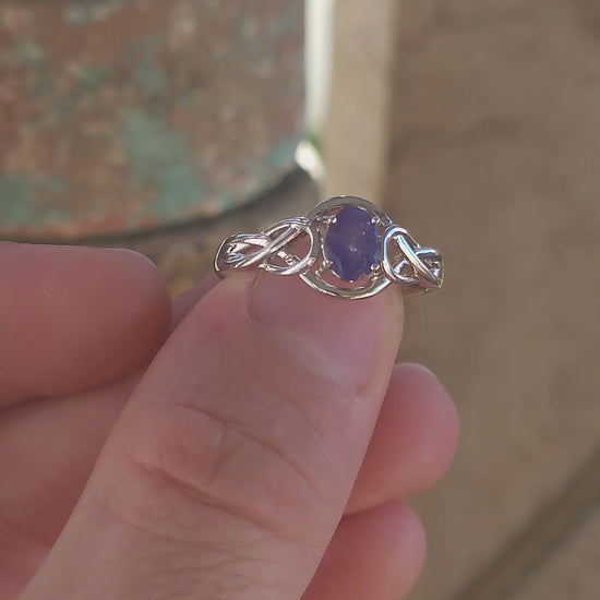 Romantic Sterling Silver & Tanzanite Infinity Love Knot Ring.