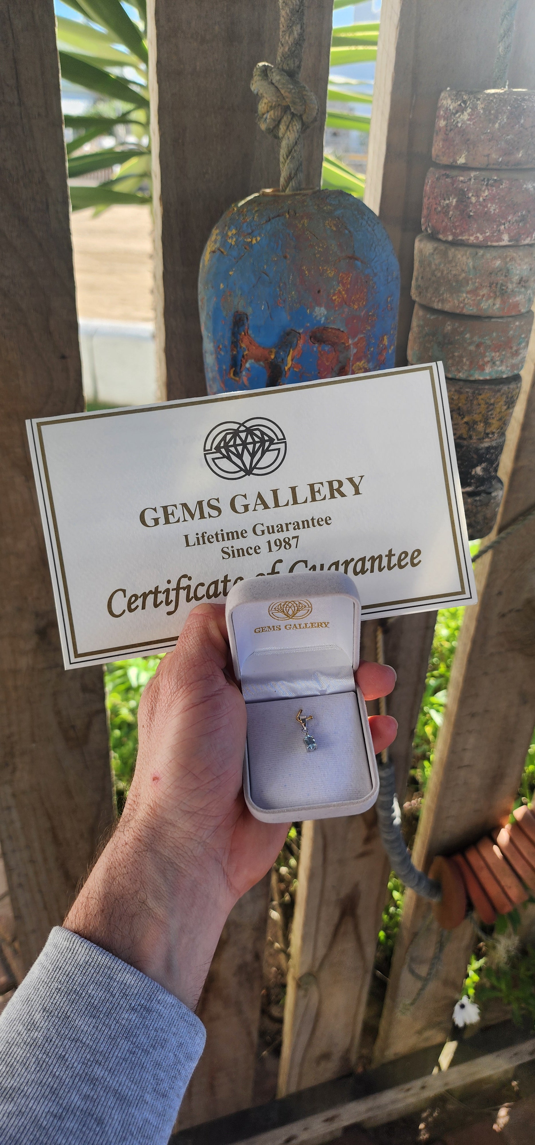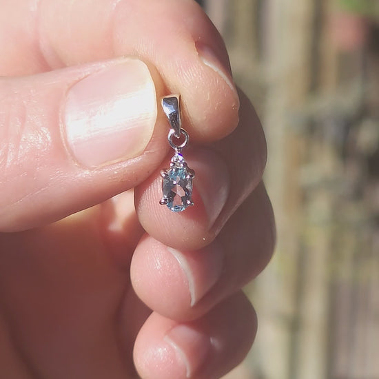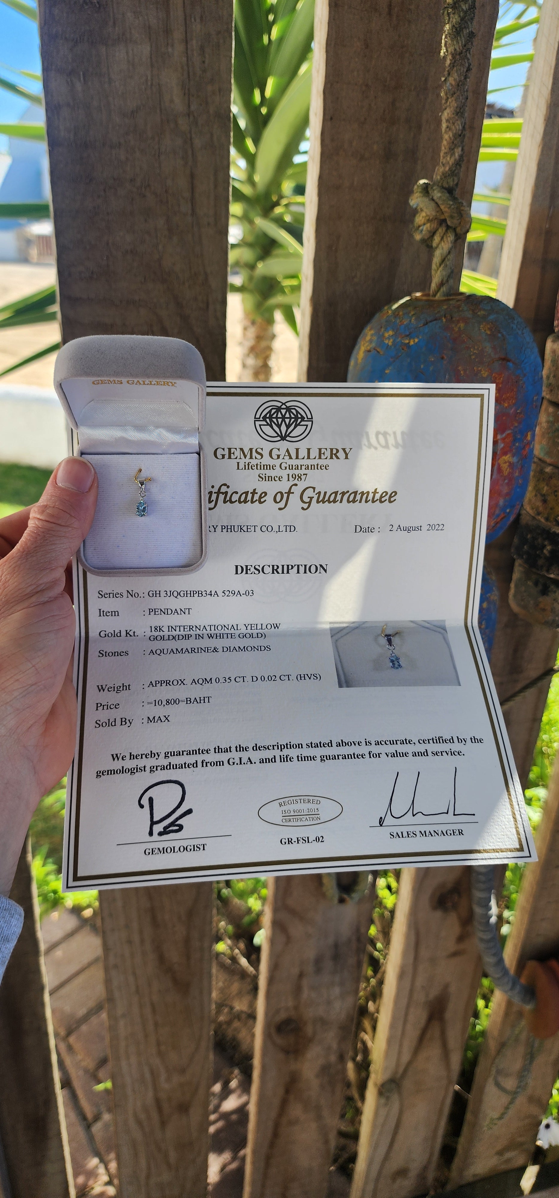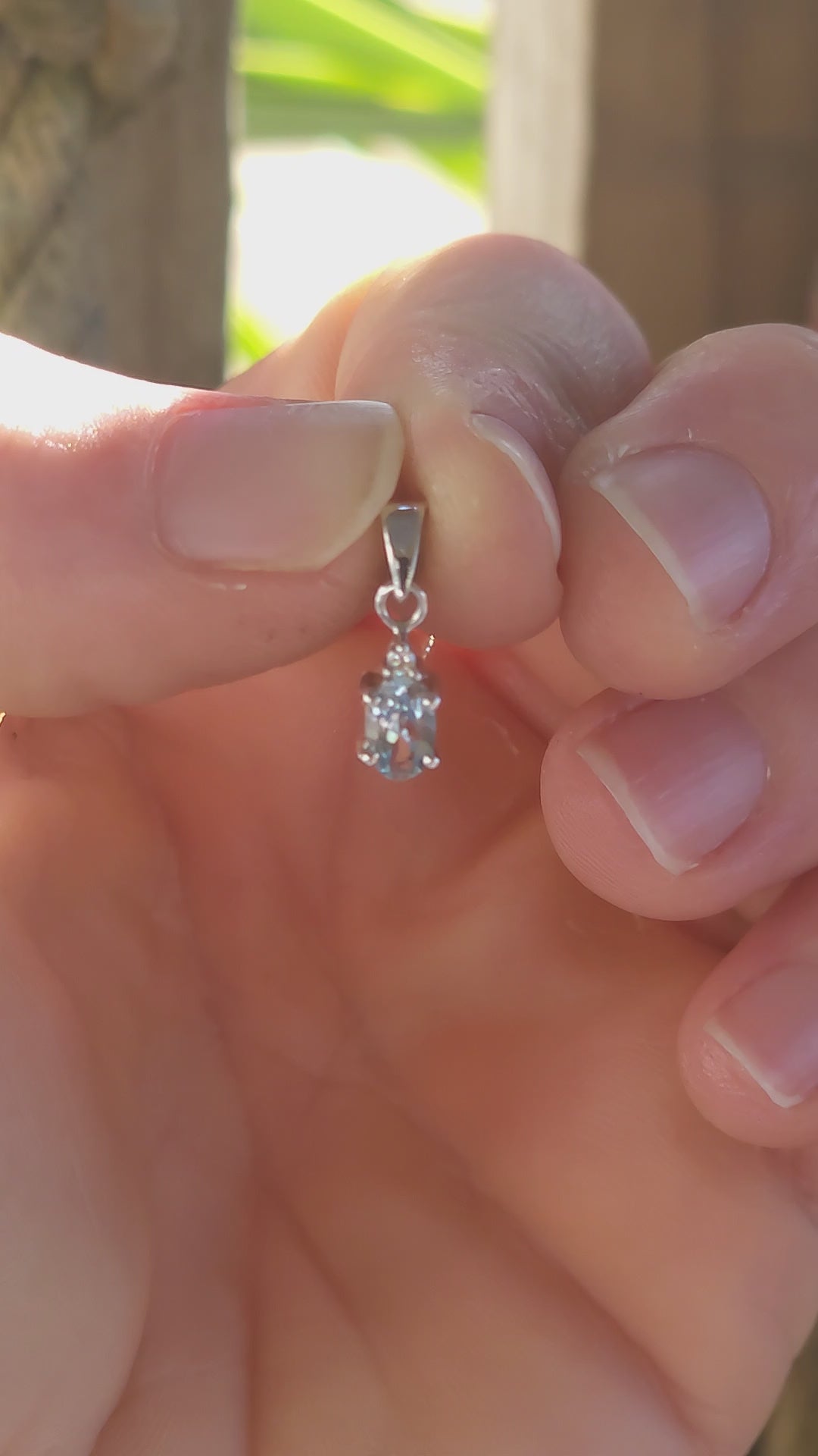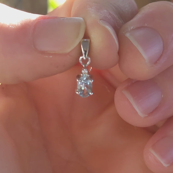 Measurements : The pendant with a drop of 8.20mm excluding the bail x 4.80mm wide.The aquamarine gemstone measures 6.20mm x 4mm.The tiny diamond measures approx 1mm in diameter.The pendant with a weight of 0.8grams.