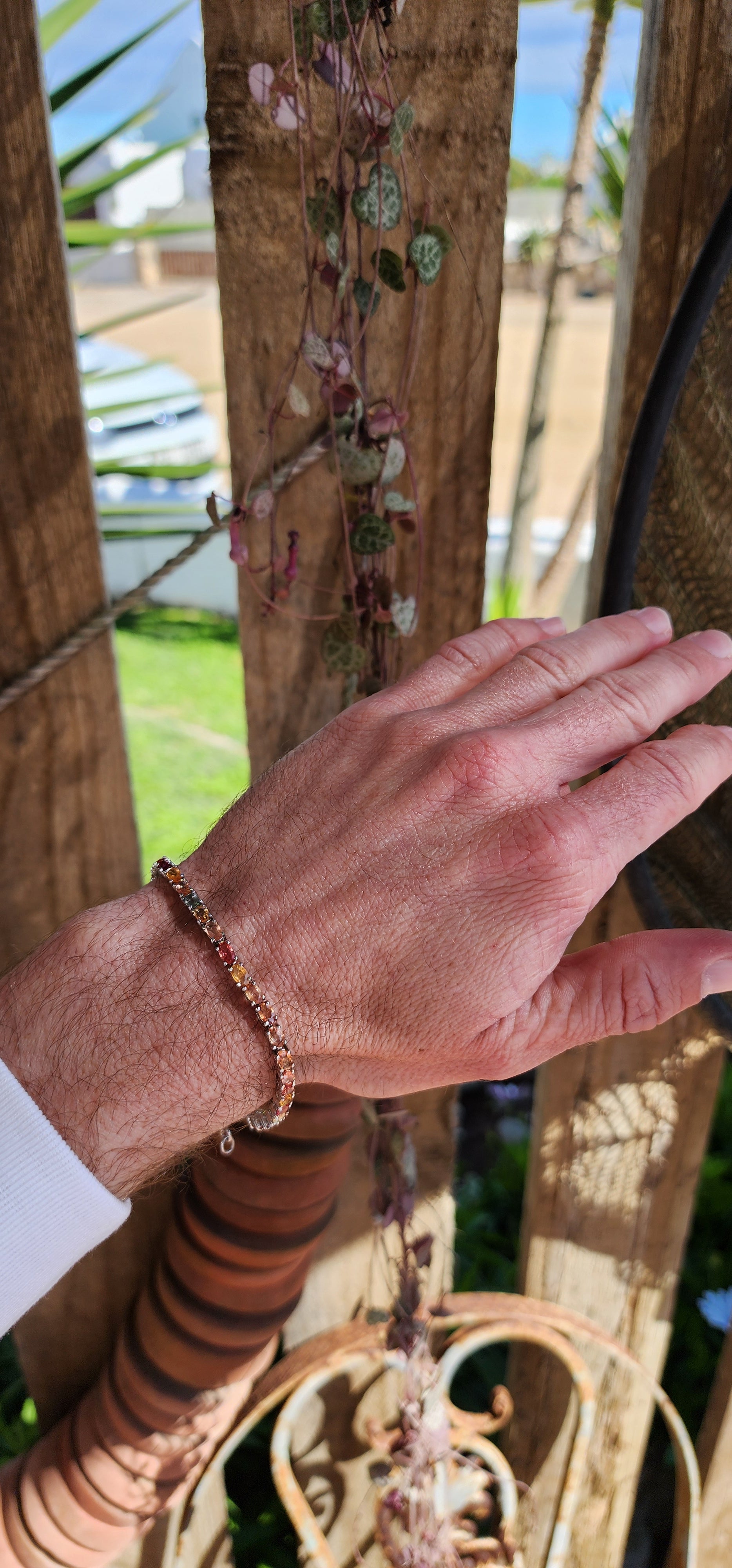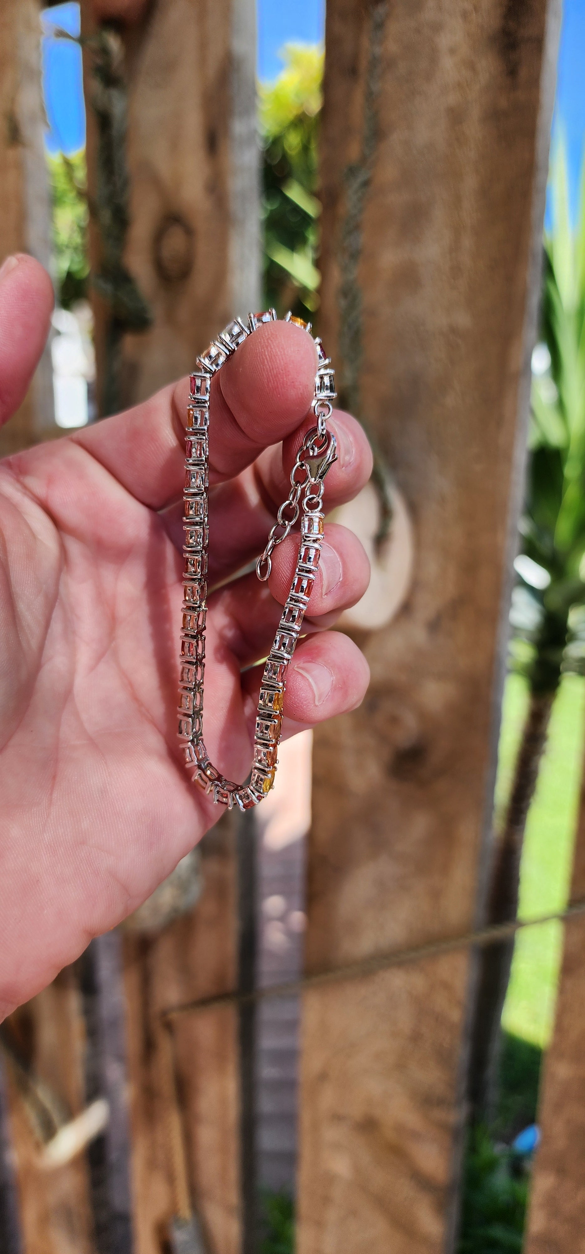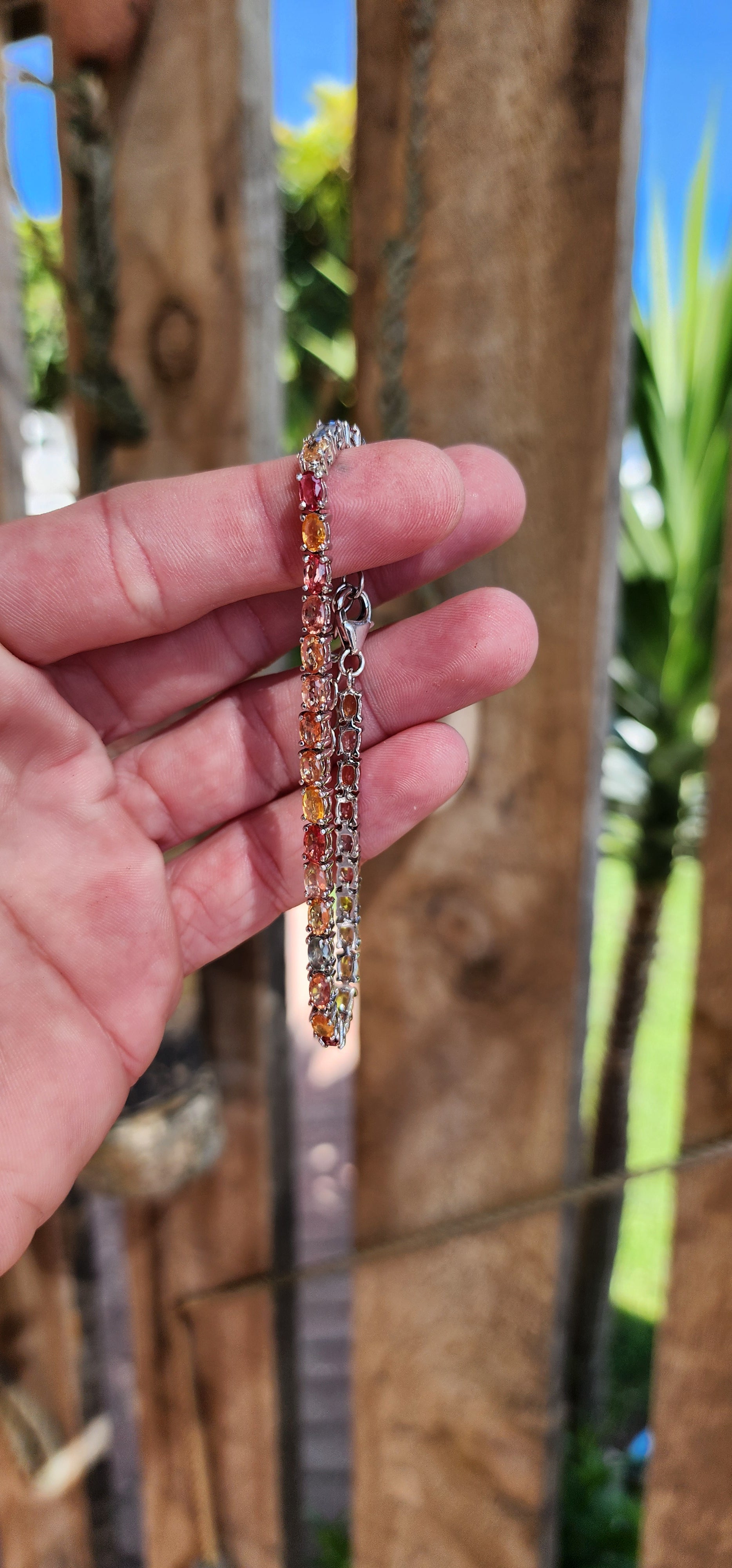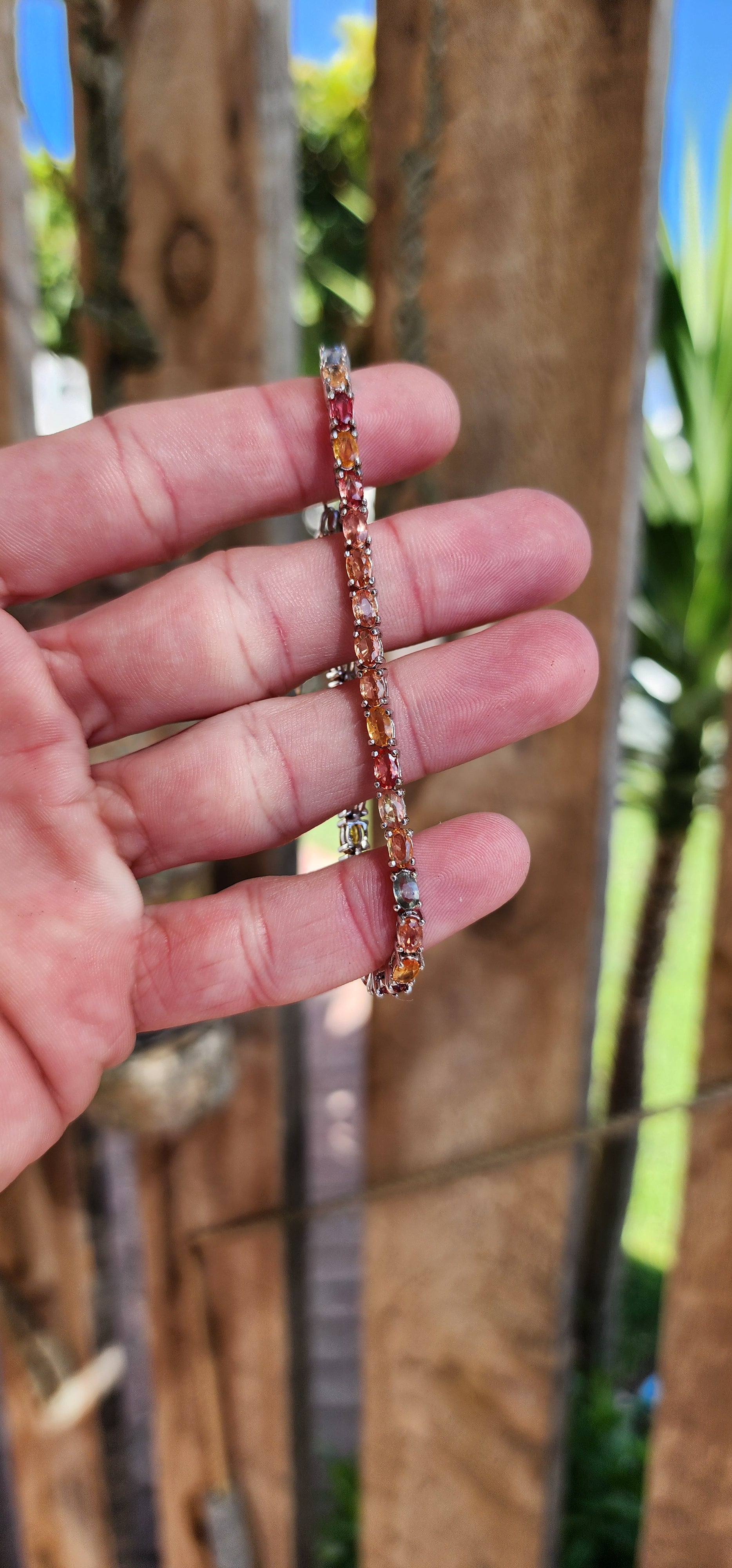 Sterling Silver and 33x Faceted Oval cut Natural Multicolor Sapphire Gemstones Tennis bracelet.