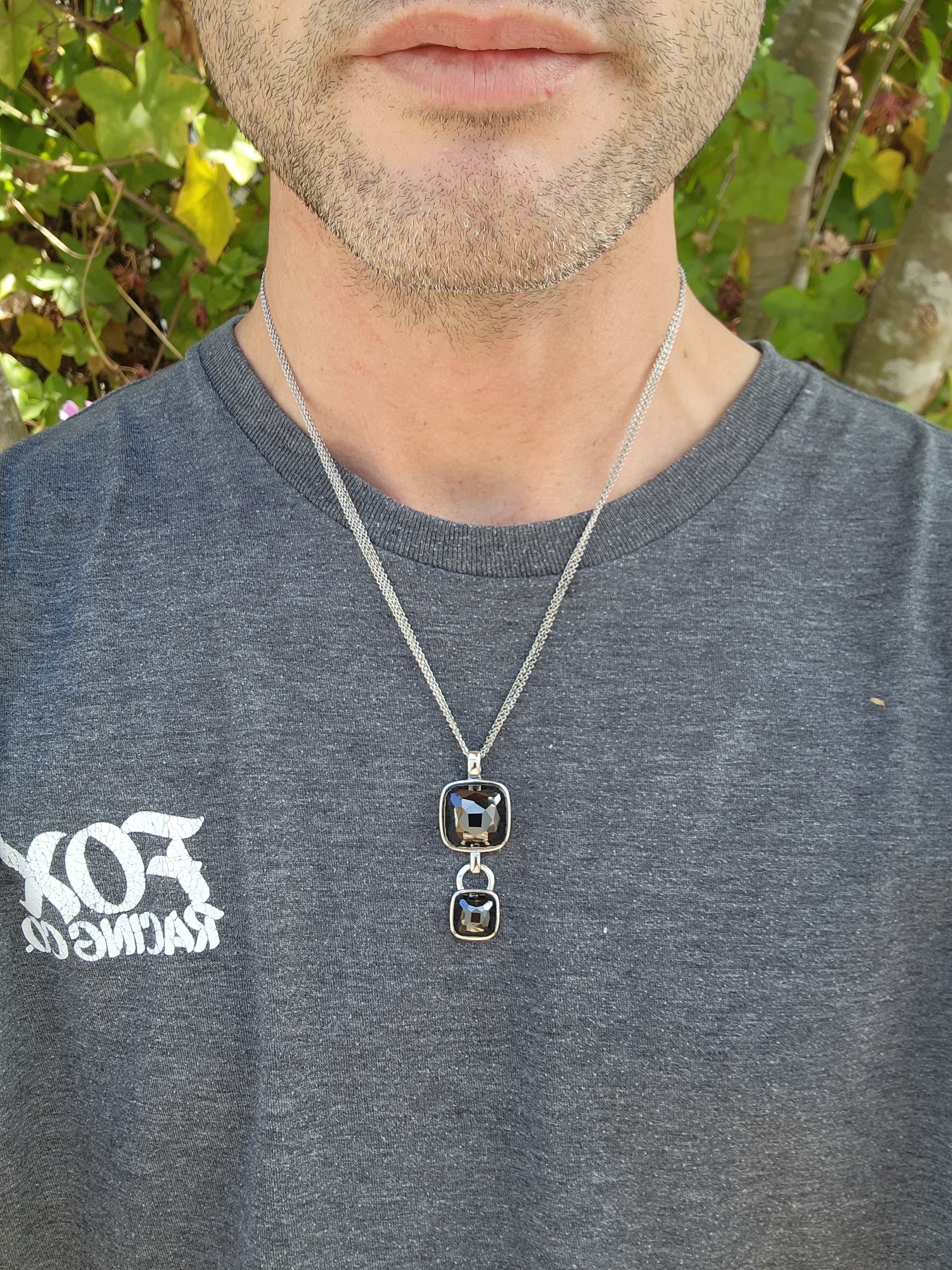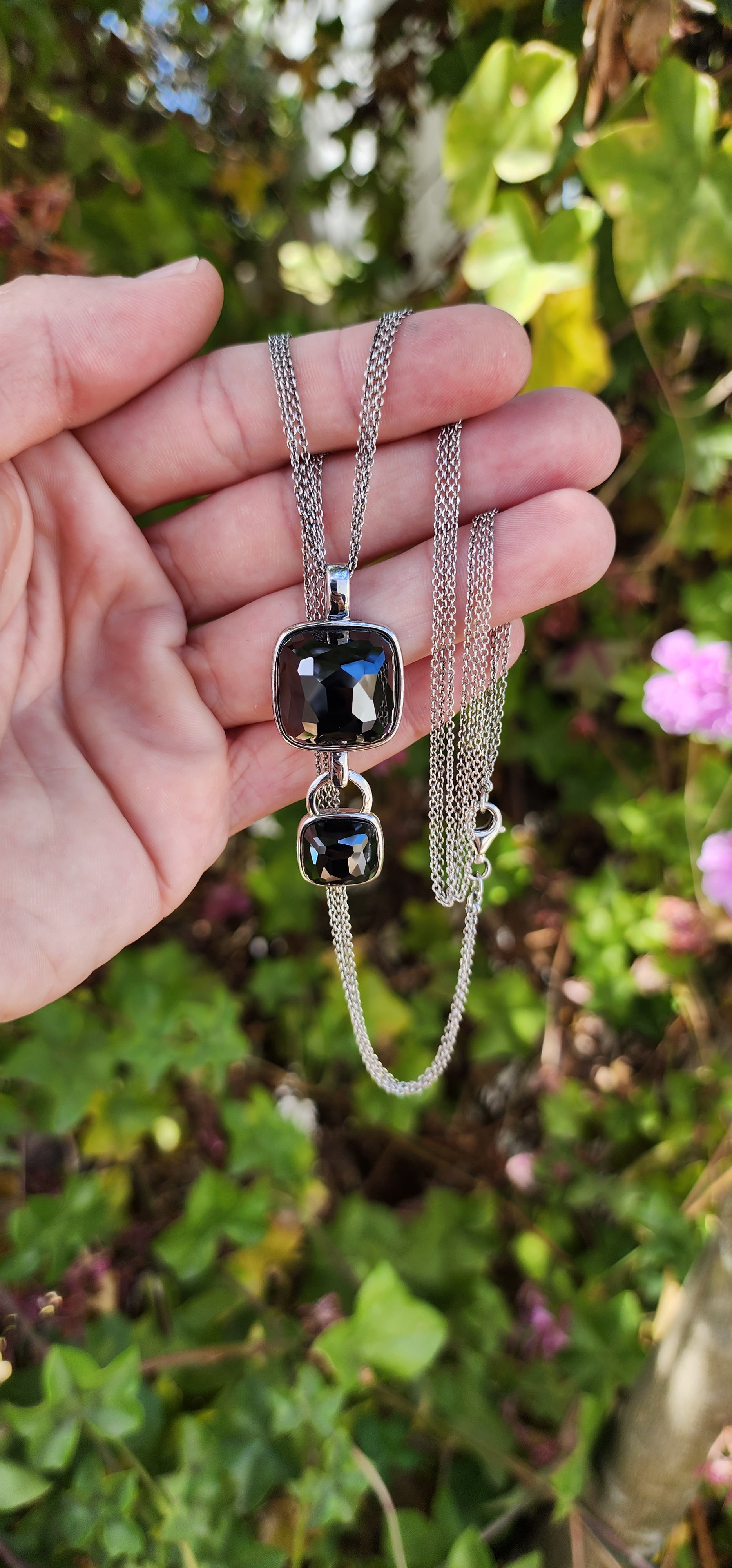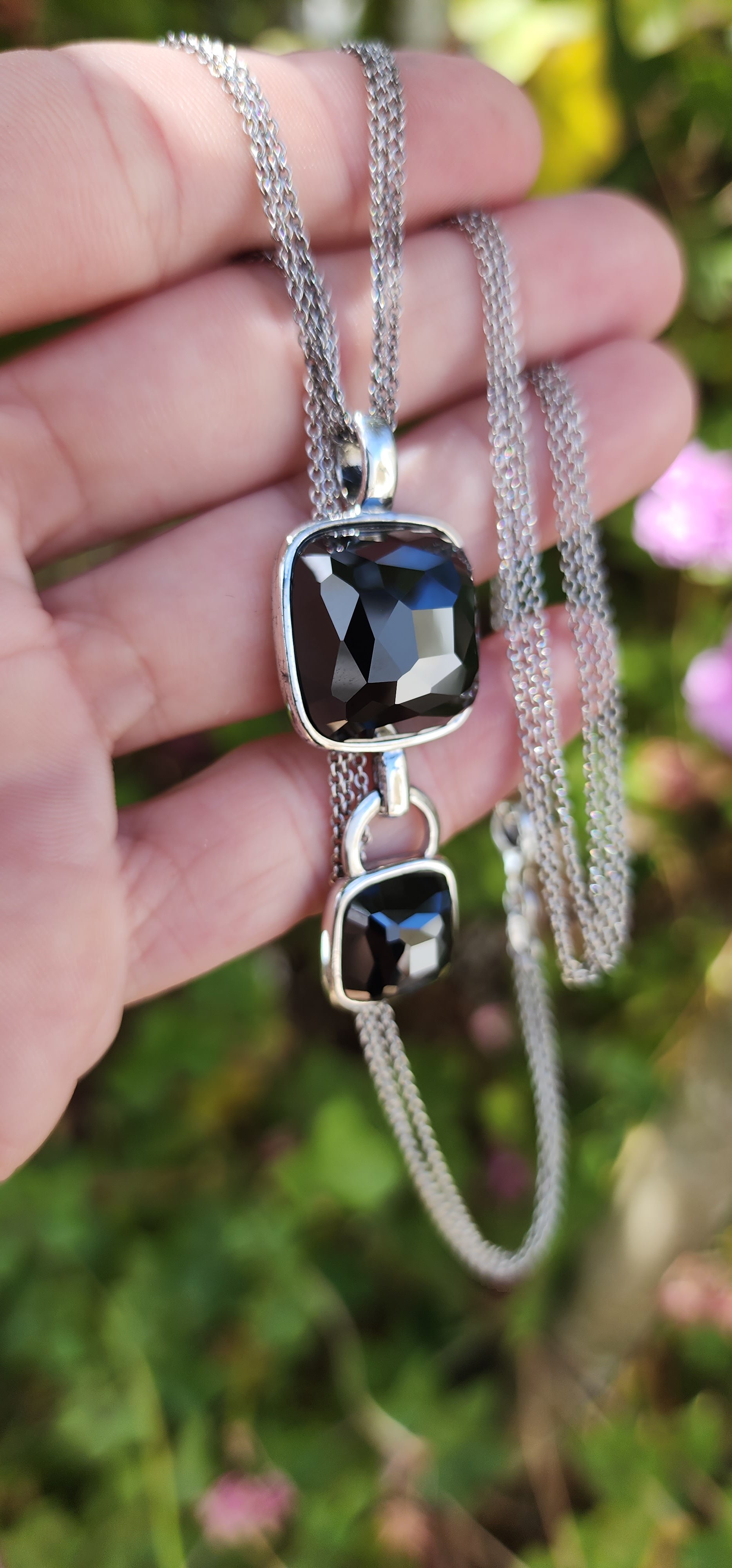 Attractive Sterling Silver pendant set with Black Faceted Rose Cut CZ Gemstones that sparkle beautifully - Fitted on an 3 strand Sterling Silver chain.