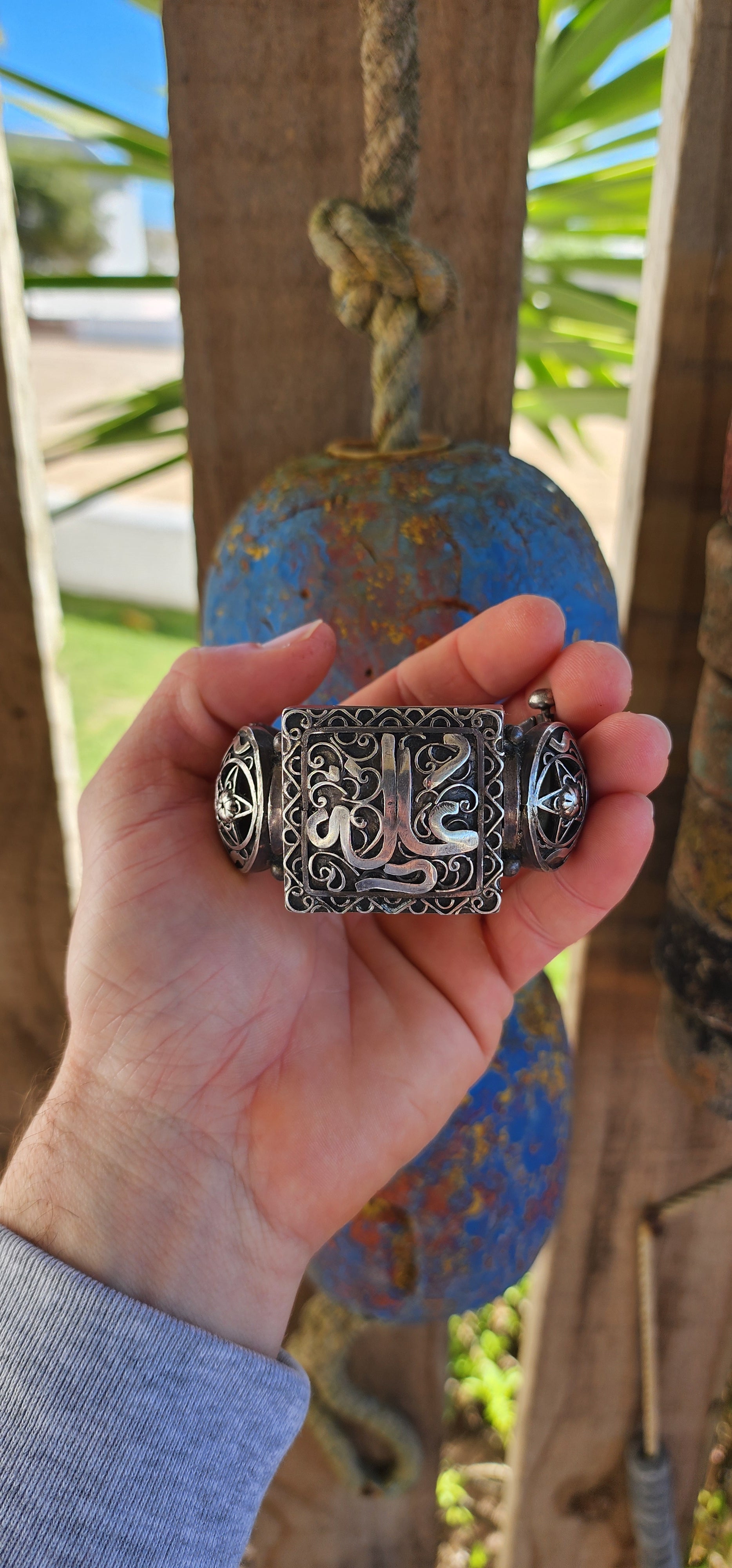 This is a chunky, statement-making antique bangle, a wearable relic of both Islamic artistry and European silversmithing, bridging two worlds. Rare examples like this are increasingly sought-after, with comparable pieces demanding R3000+ online, though finer examples with provenance and hallmarking such as this one can command considerably more.