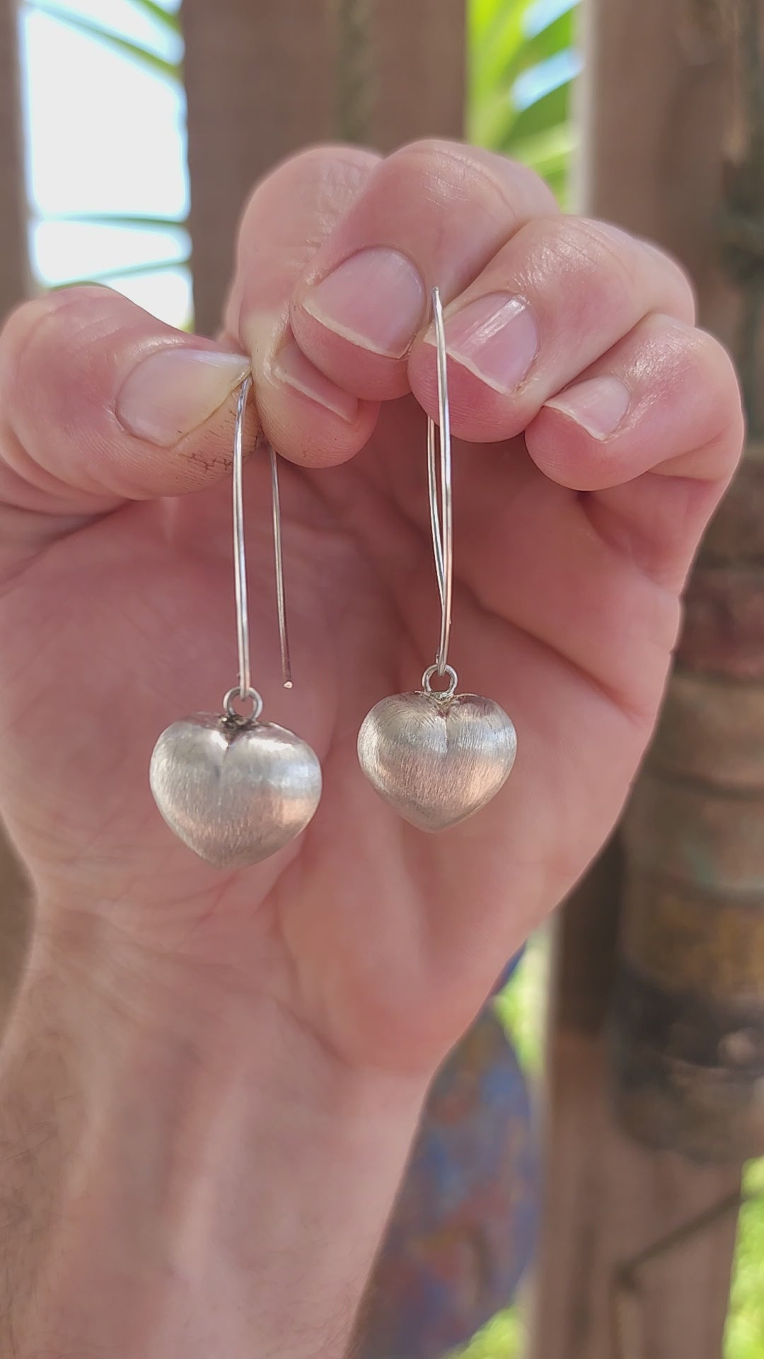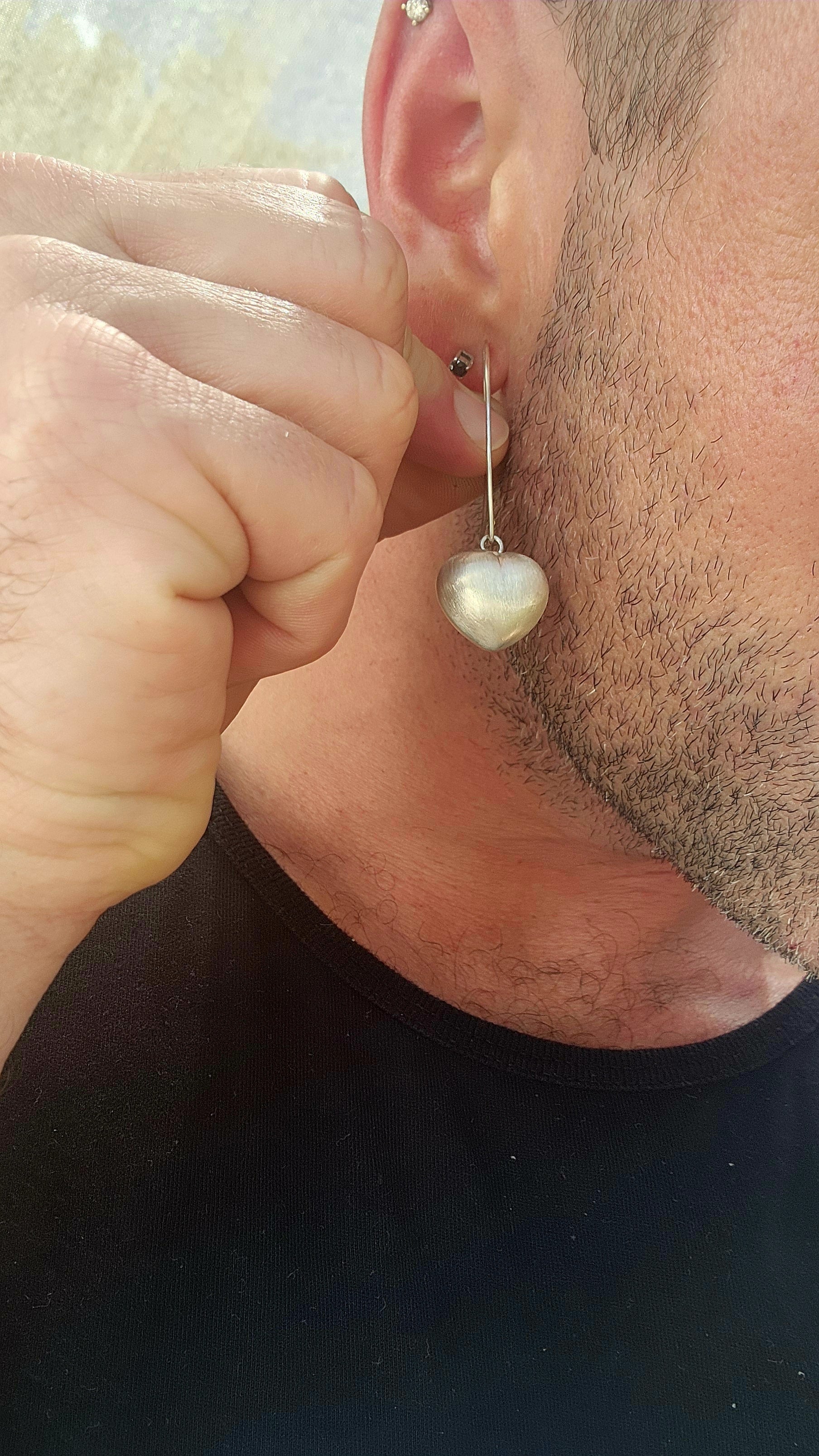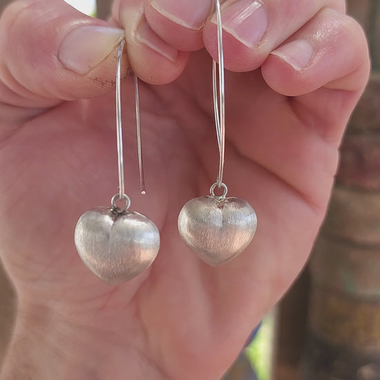 The hearts have a softly rounded, dimensional shape — not flat — giving them that lovely full, pillowy silhouette. The surface is finished with a subtle brushed/textured effect, adding depth and a soft satin glow rather than high shine, which makes them feel modern and wearable rather than overly cutesy.