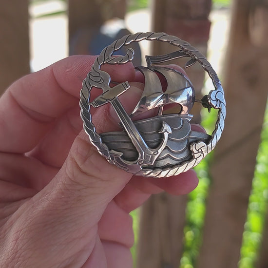 "The Mariner's Tale" - Like a sailor’s cherished keepsake, this exquisite and generous in size vintage sterling silver brooch captures the romance, adventure, and symbolism of the high seas in a single, masterfully crafted piece.