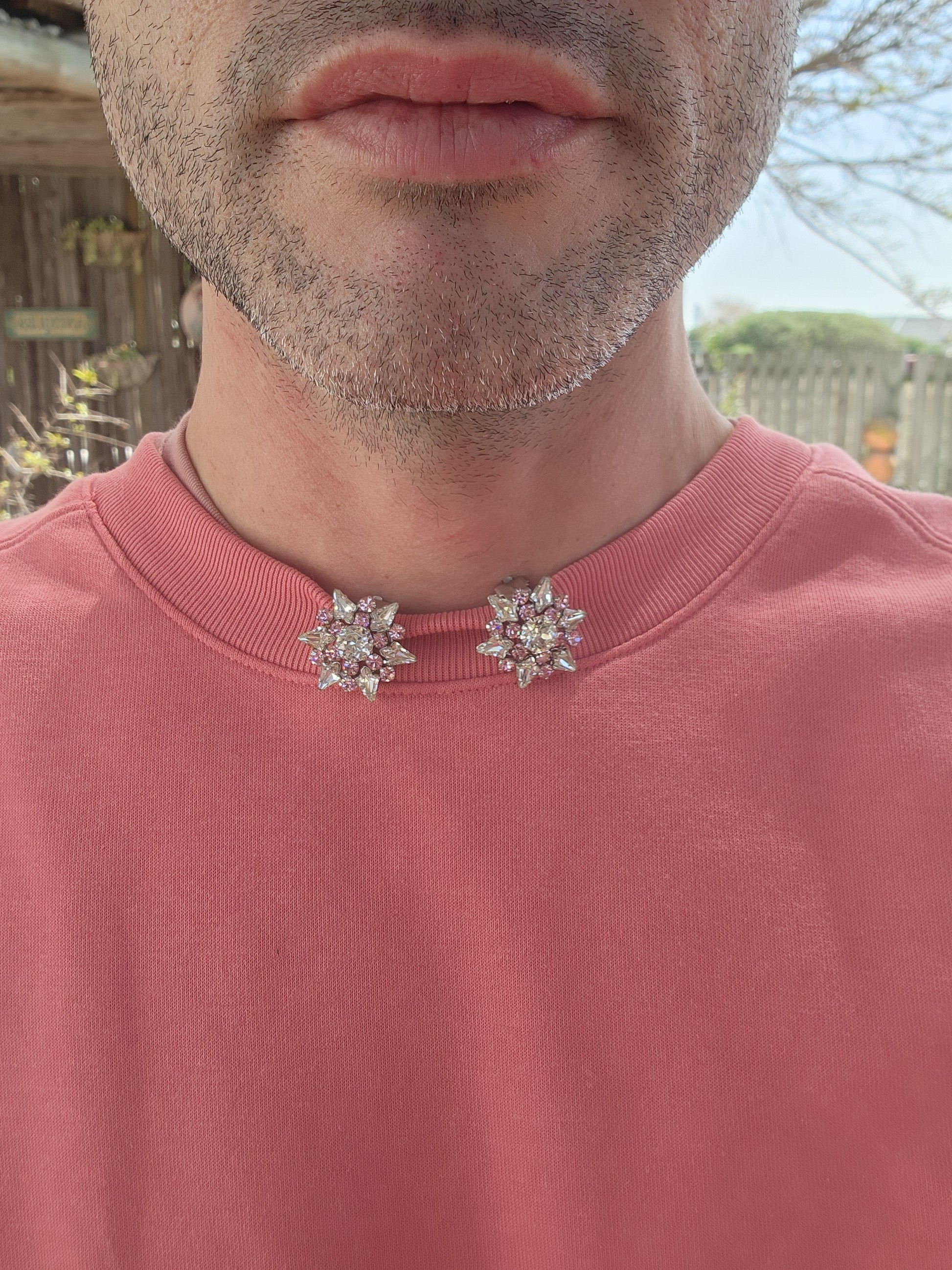 Clip-on earrings are not limited to your earlobes, they can be used as collar clips aswell!