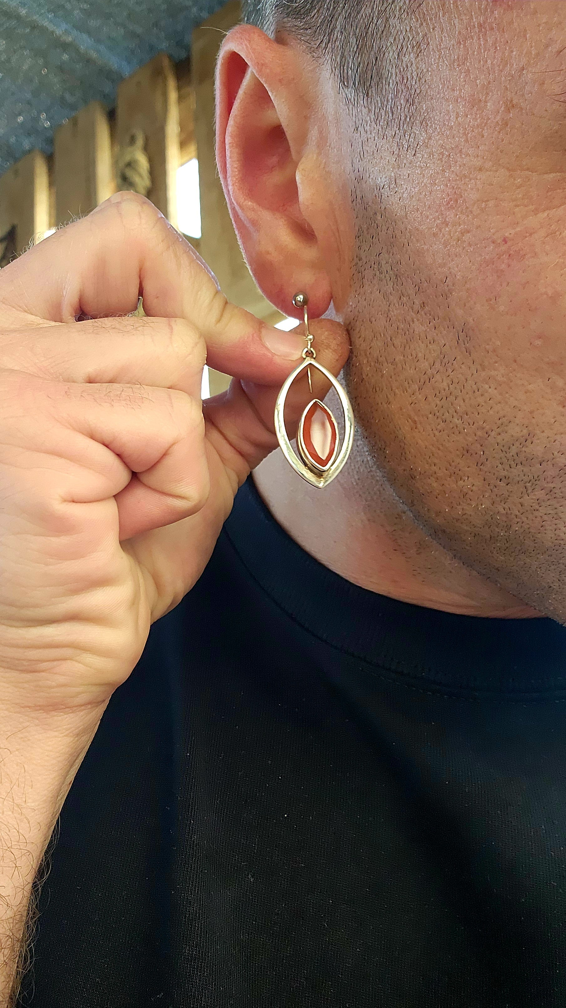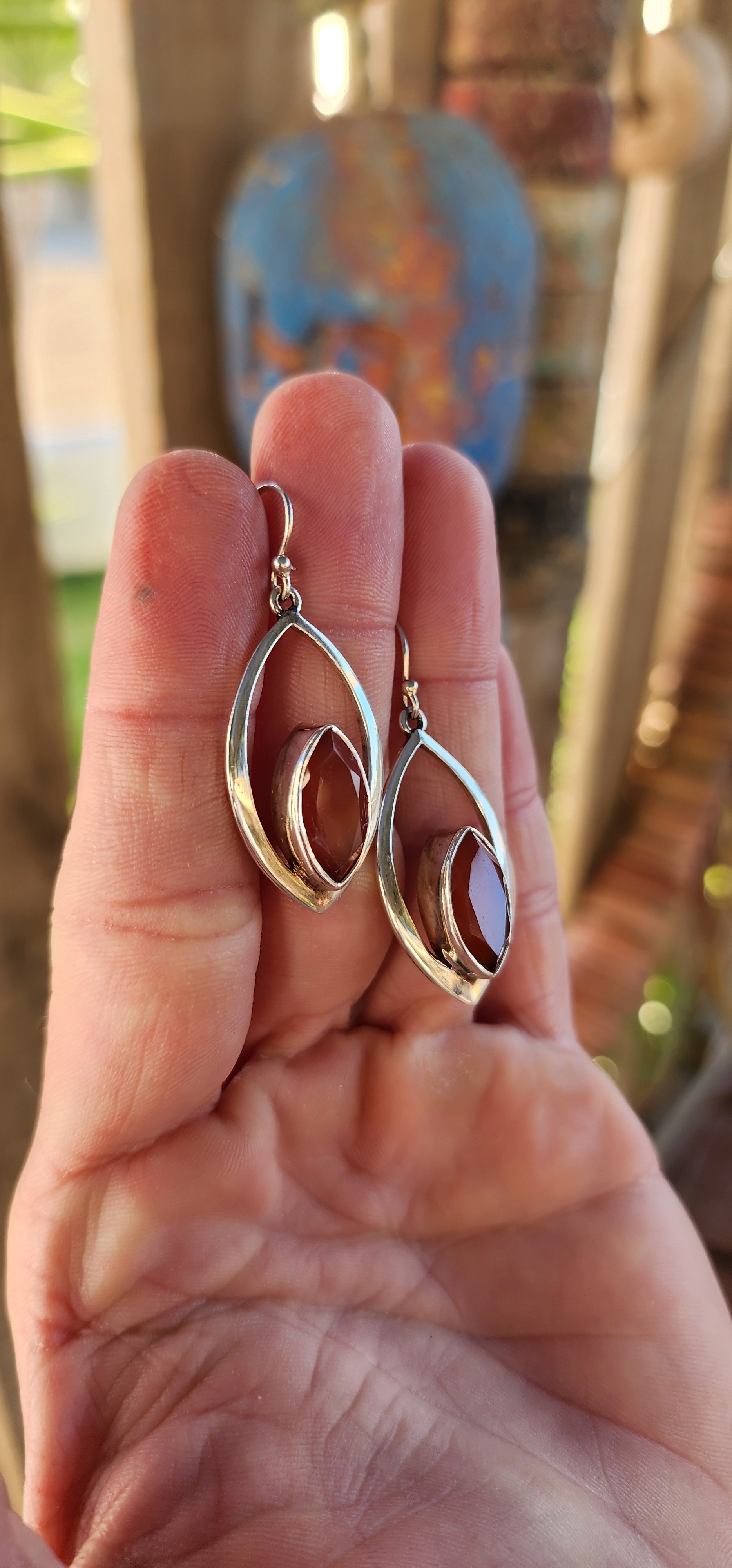 Measurements :Each earring measures 3.1 cm x 1.8cm excluding the shepherds hooks.Each marquise cut carnelian measures 1.5cm x 8.20mm.The earrings with a combined weight of 8.9grams.