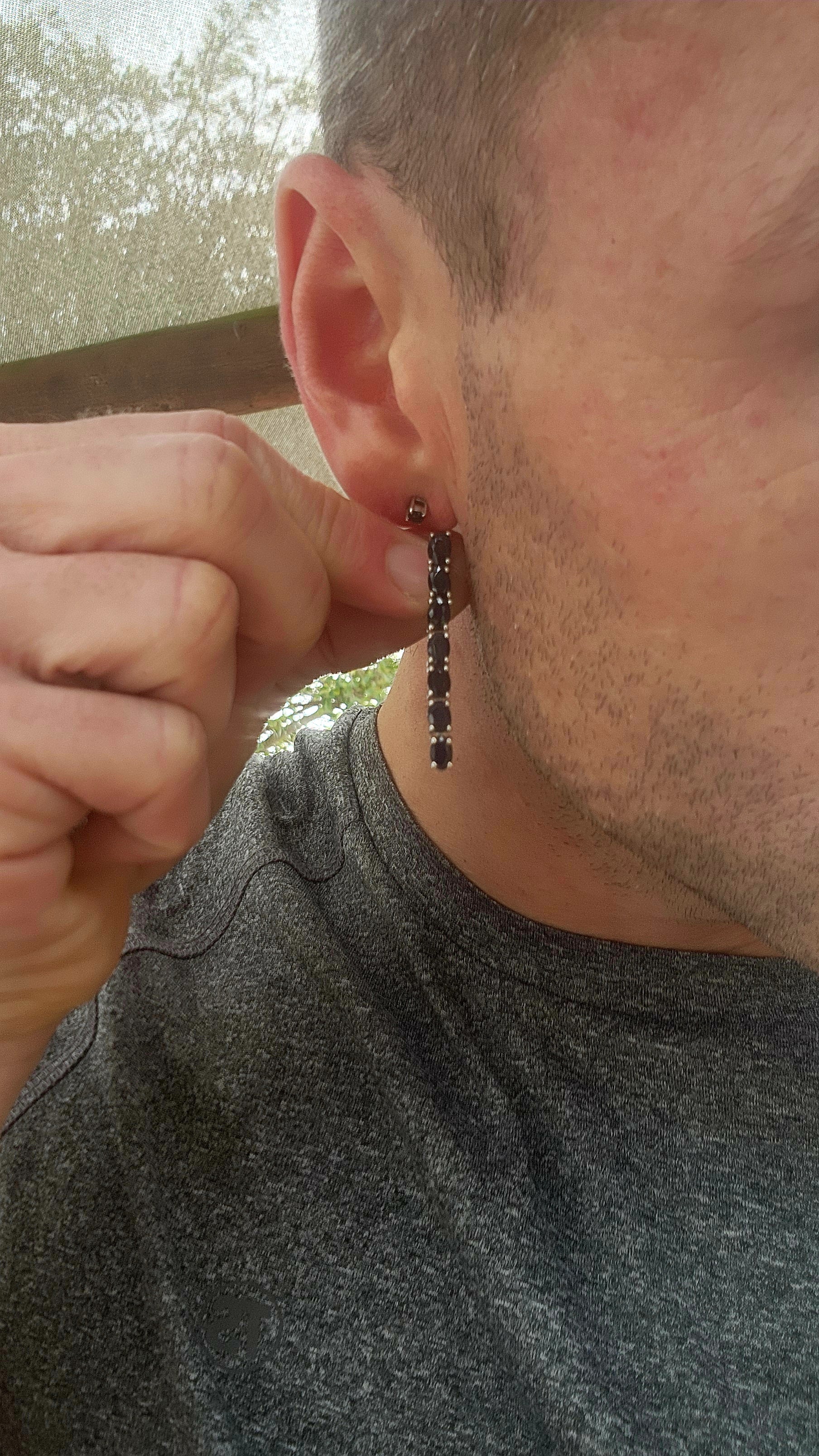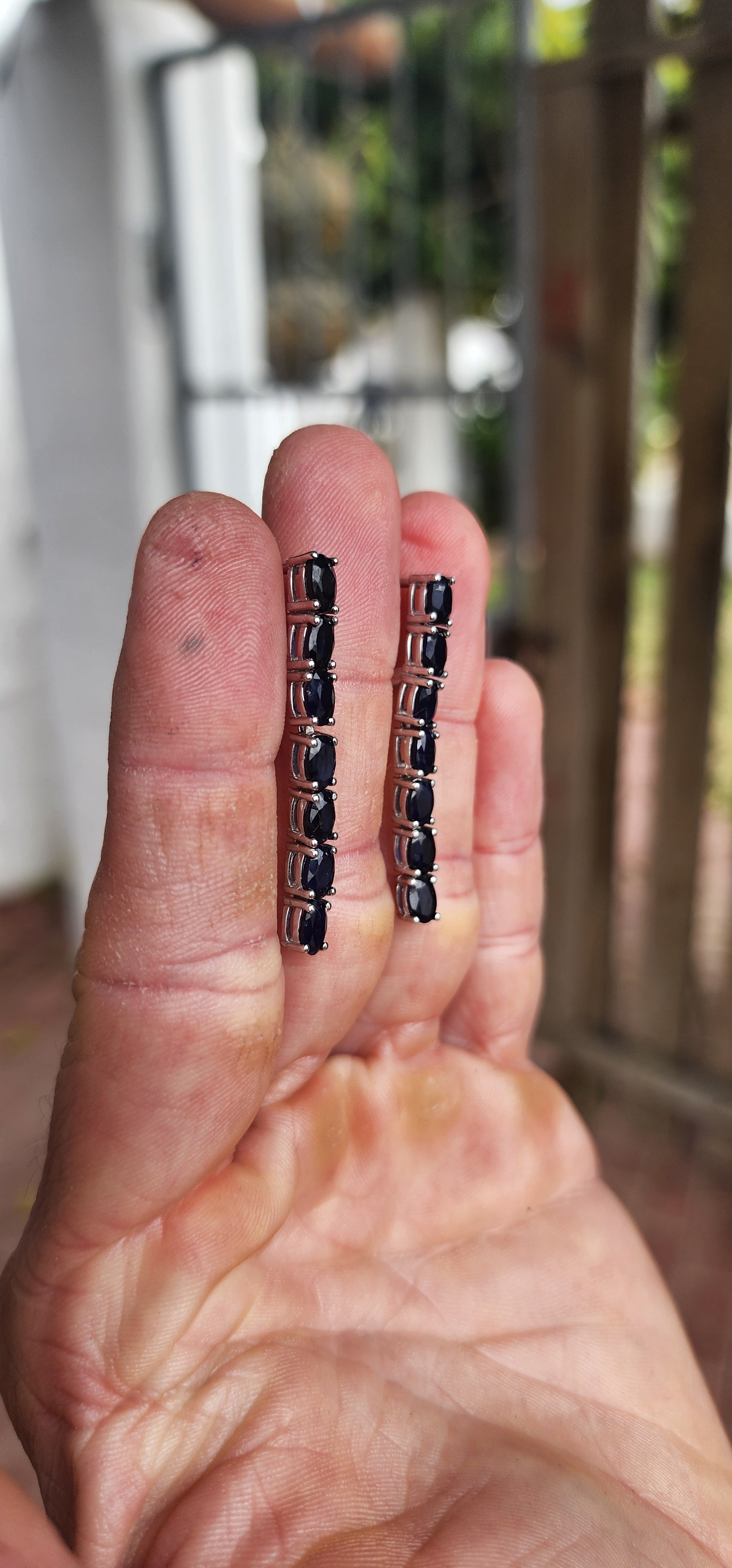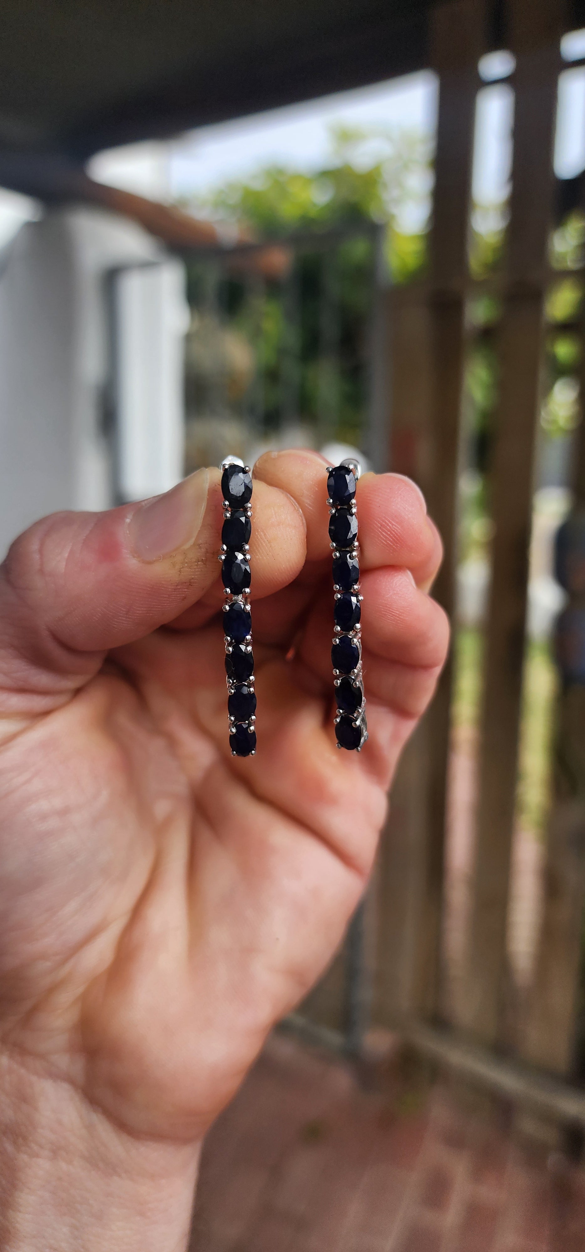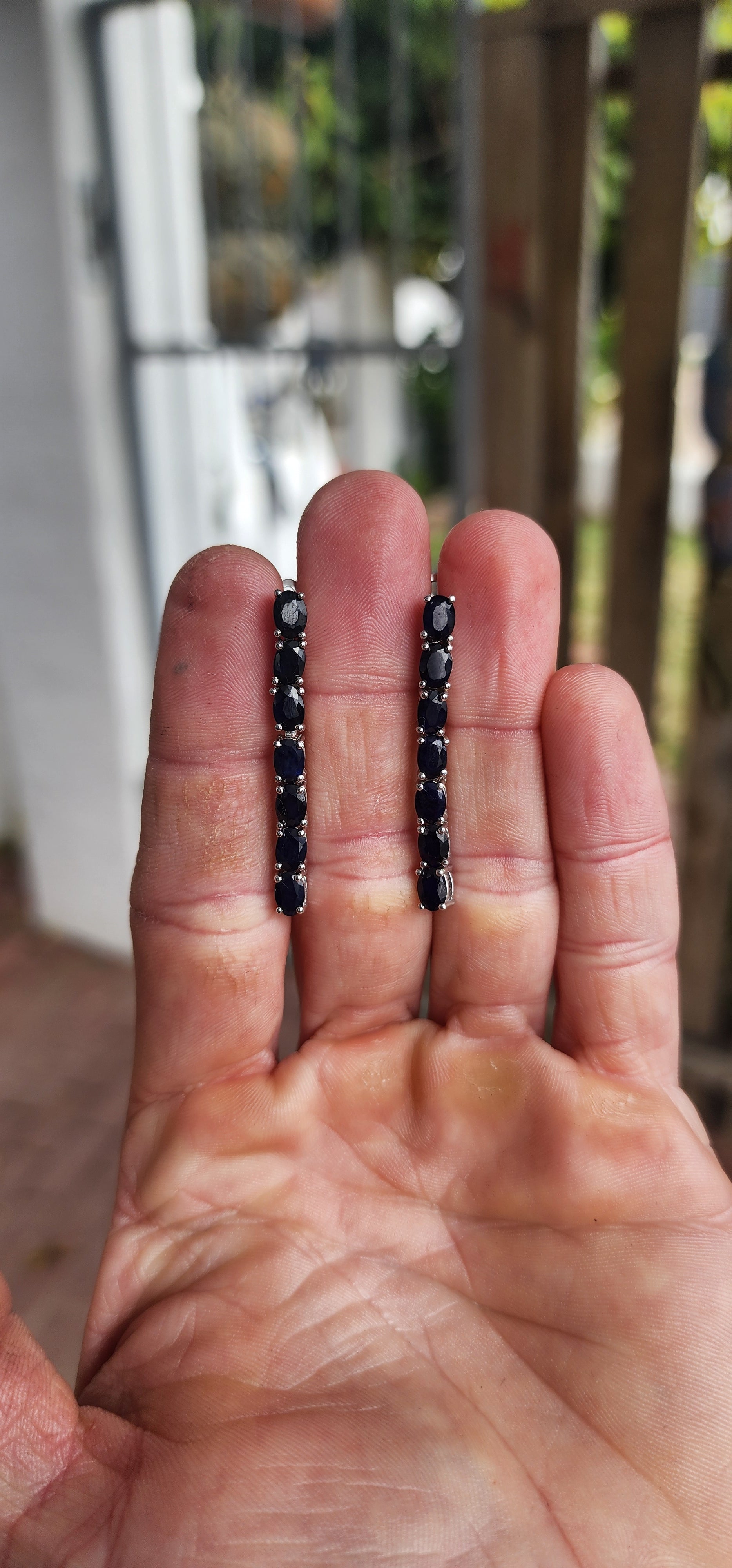 Measurements :Each earring with a drop of 4cm x 4mm wide.Each of the oval sapphire gemstones measure approx 5.50 mm x 3.70 mm each .The earrings with a combined weight of 6.9 grams.