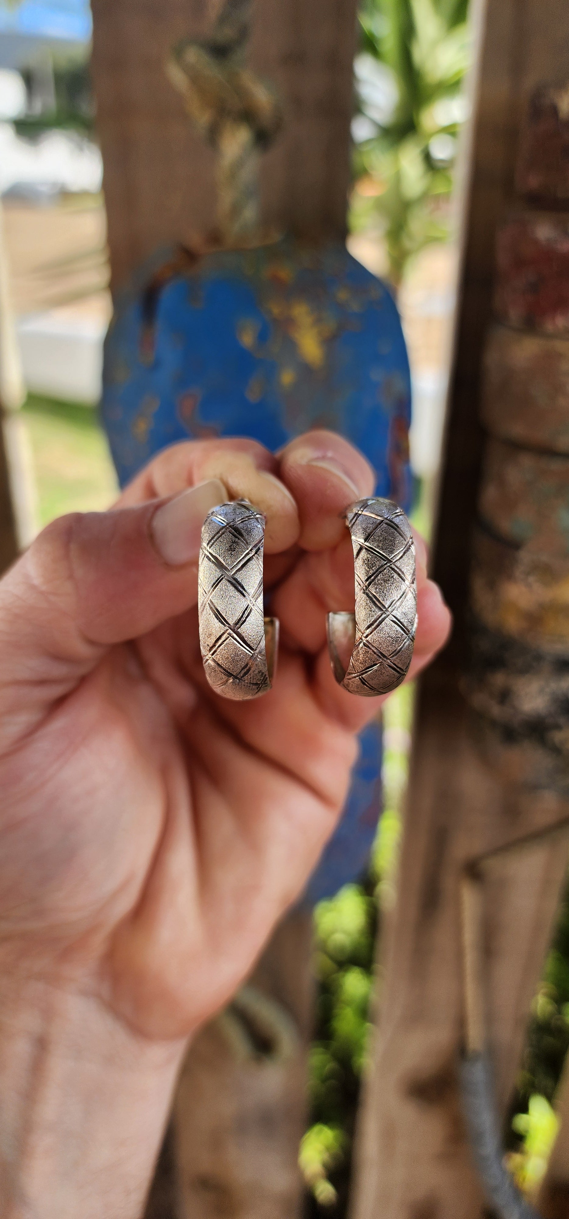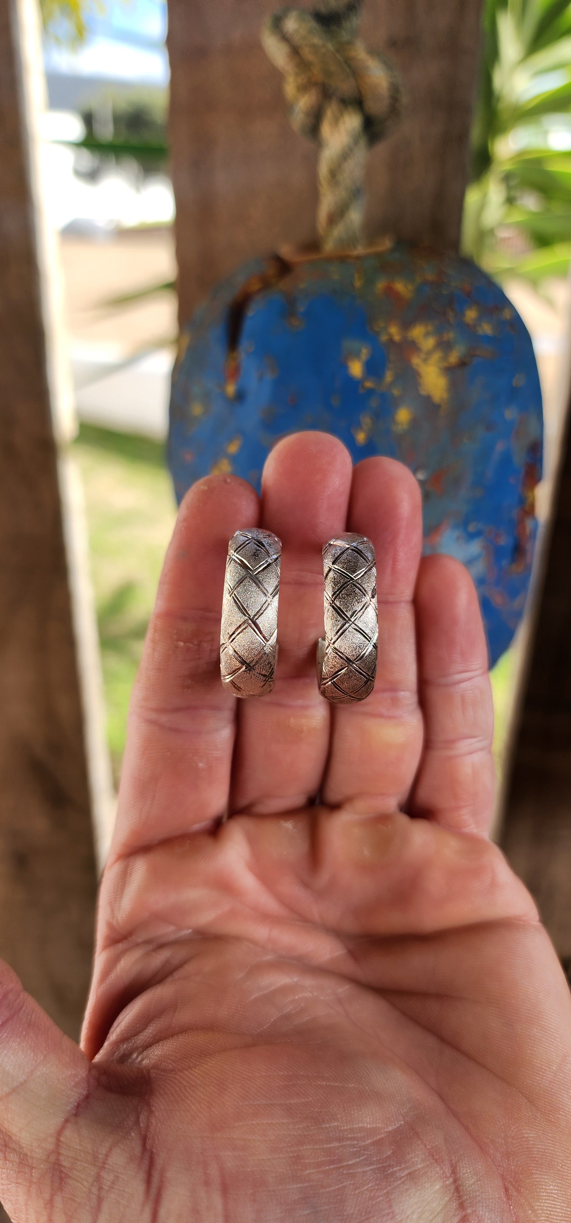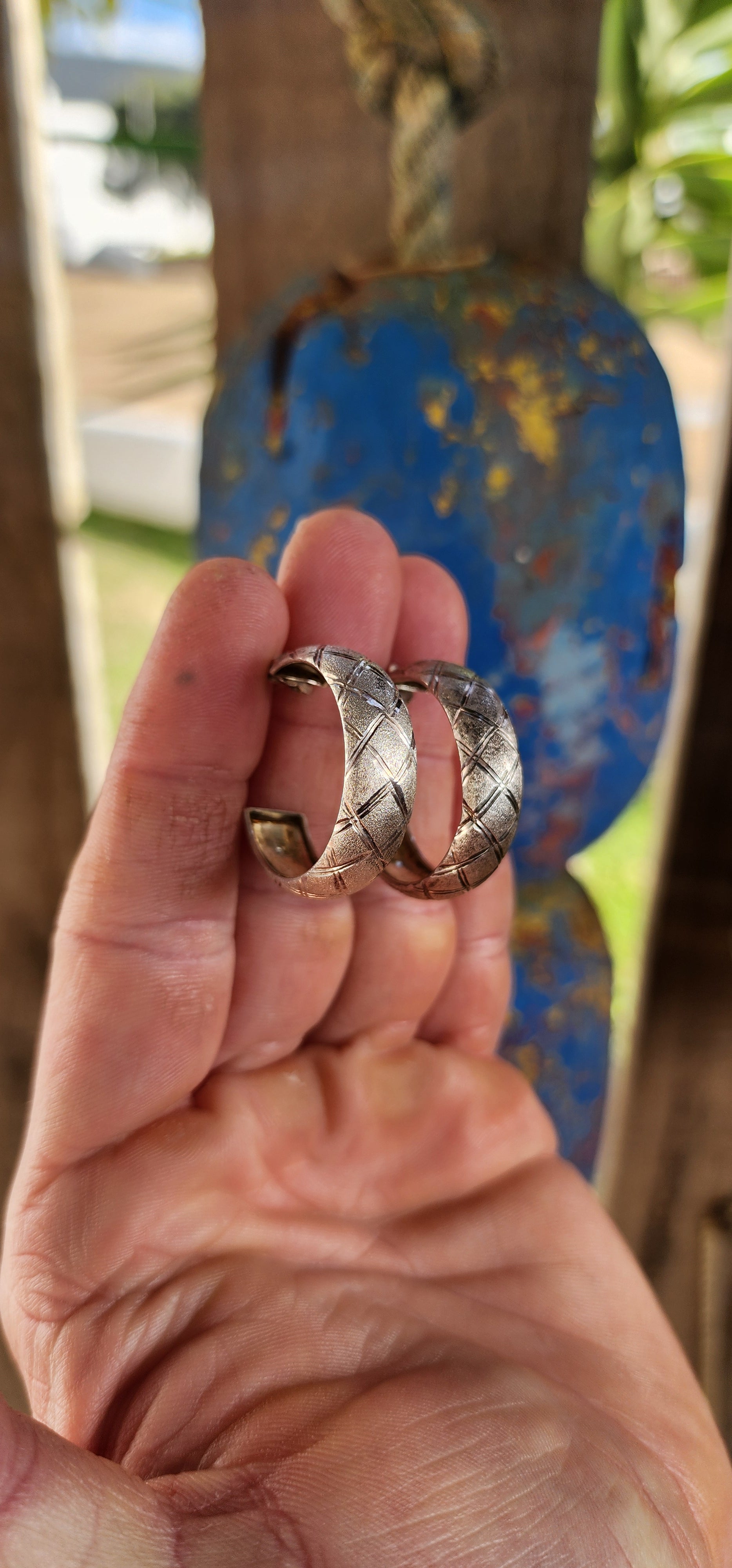 These striking vintage sterling silver half hoop earrings blend sculptural form with textured artistry for a look that’s equal parts bold and wearable.
