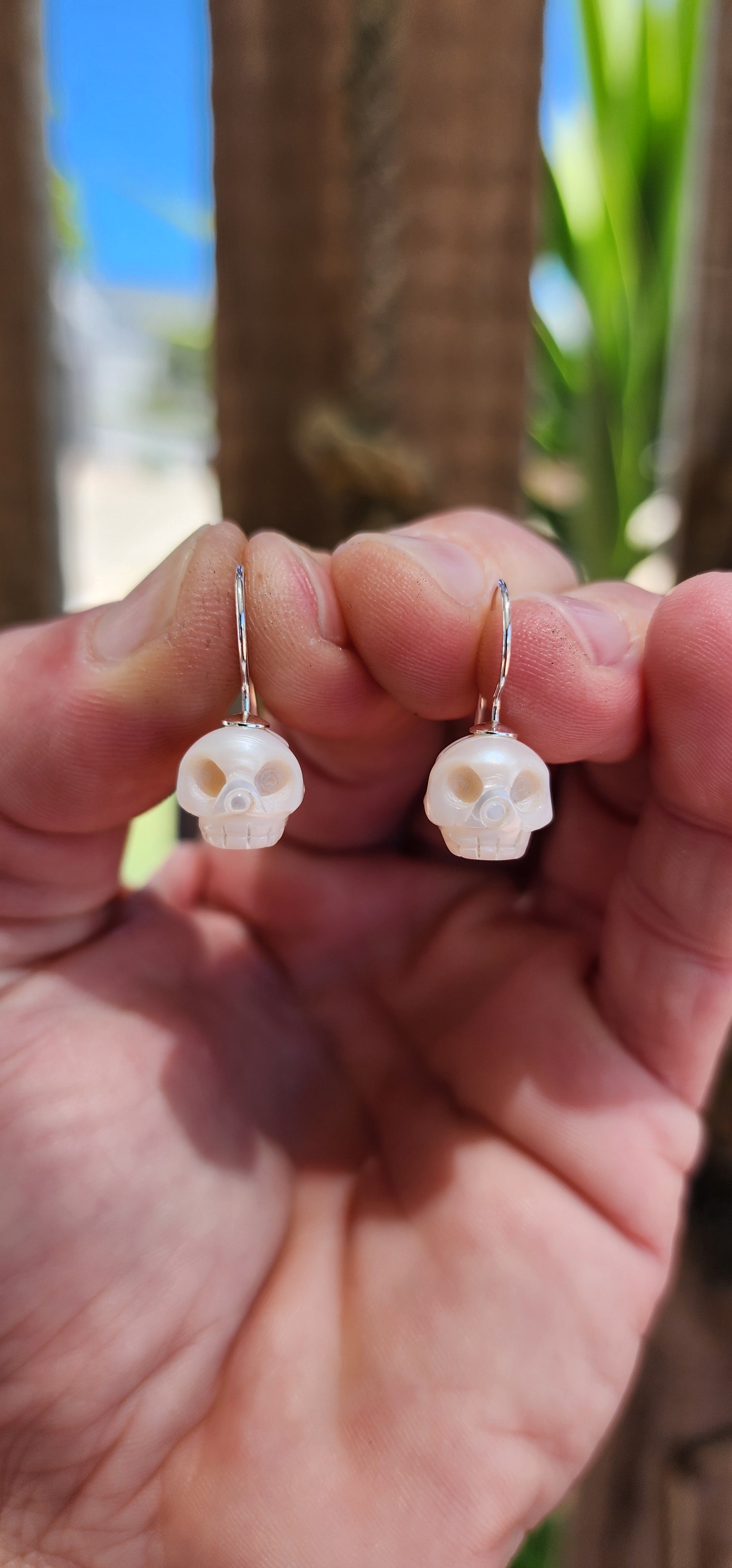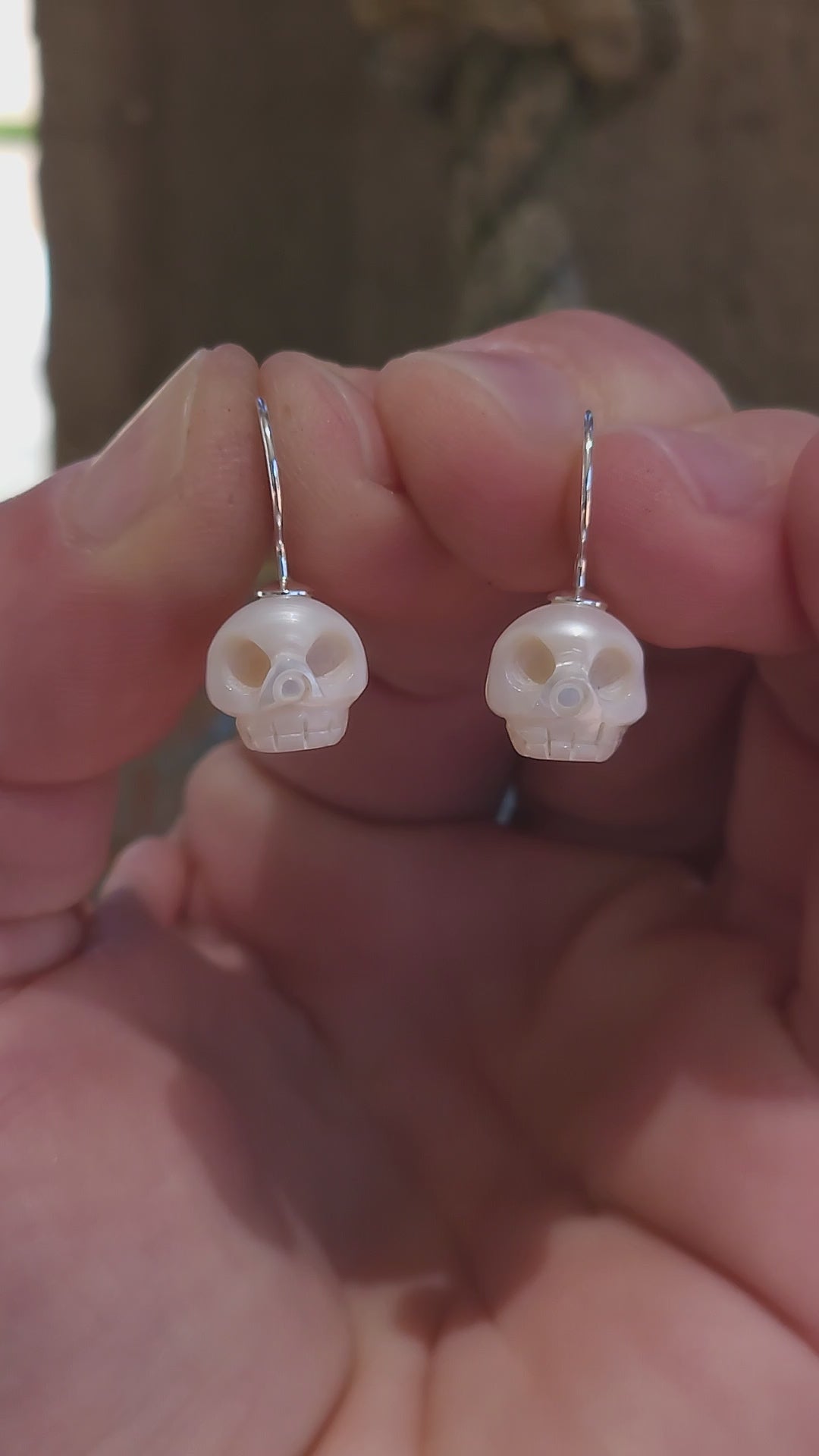 These Victorian revival "memento mori" mourning skull earrings are truly captivating in their intricate design and symbolism.Each tiny skull is expertly hand-carved from a single cultured pearl, showcasing the natural luster and iridescent quality that pearls are known for.