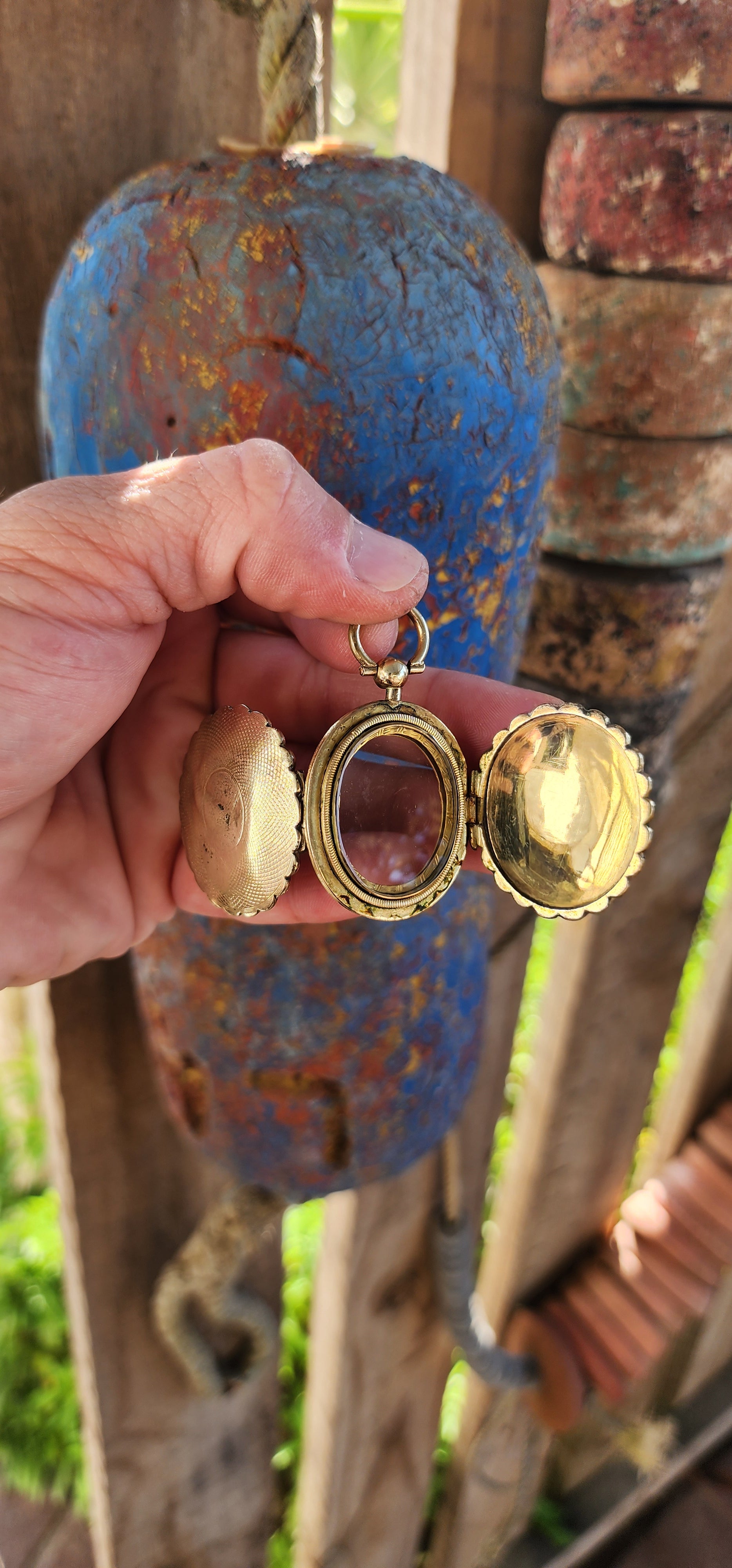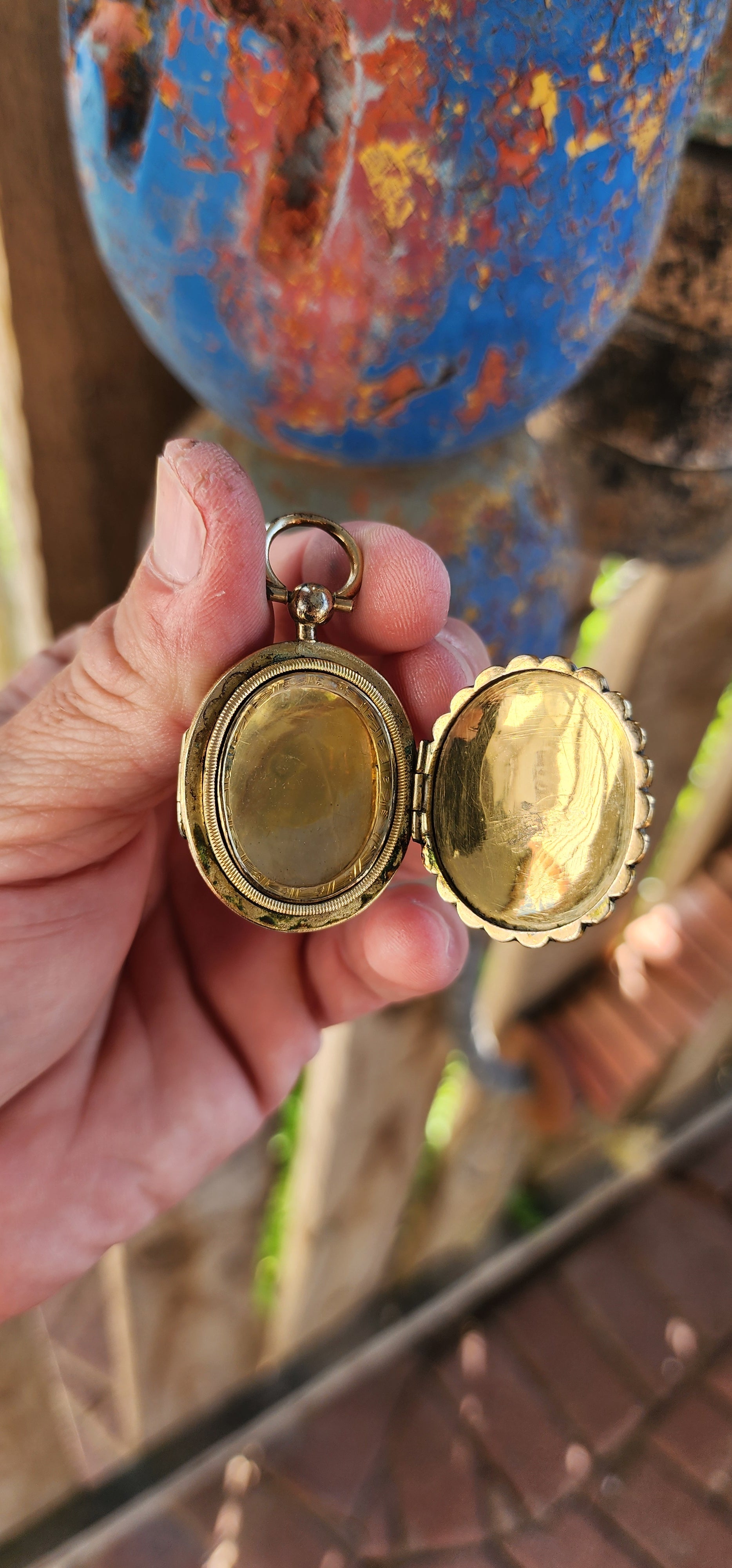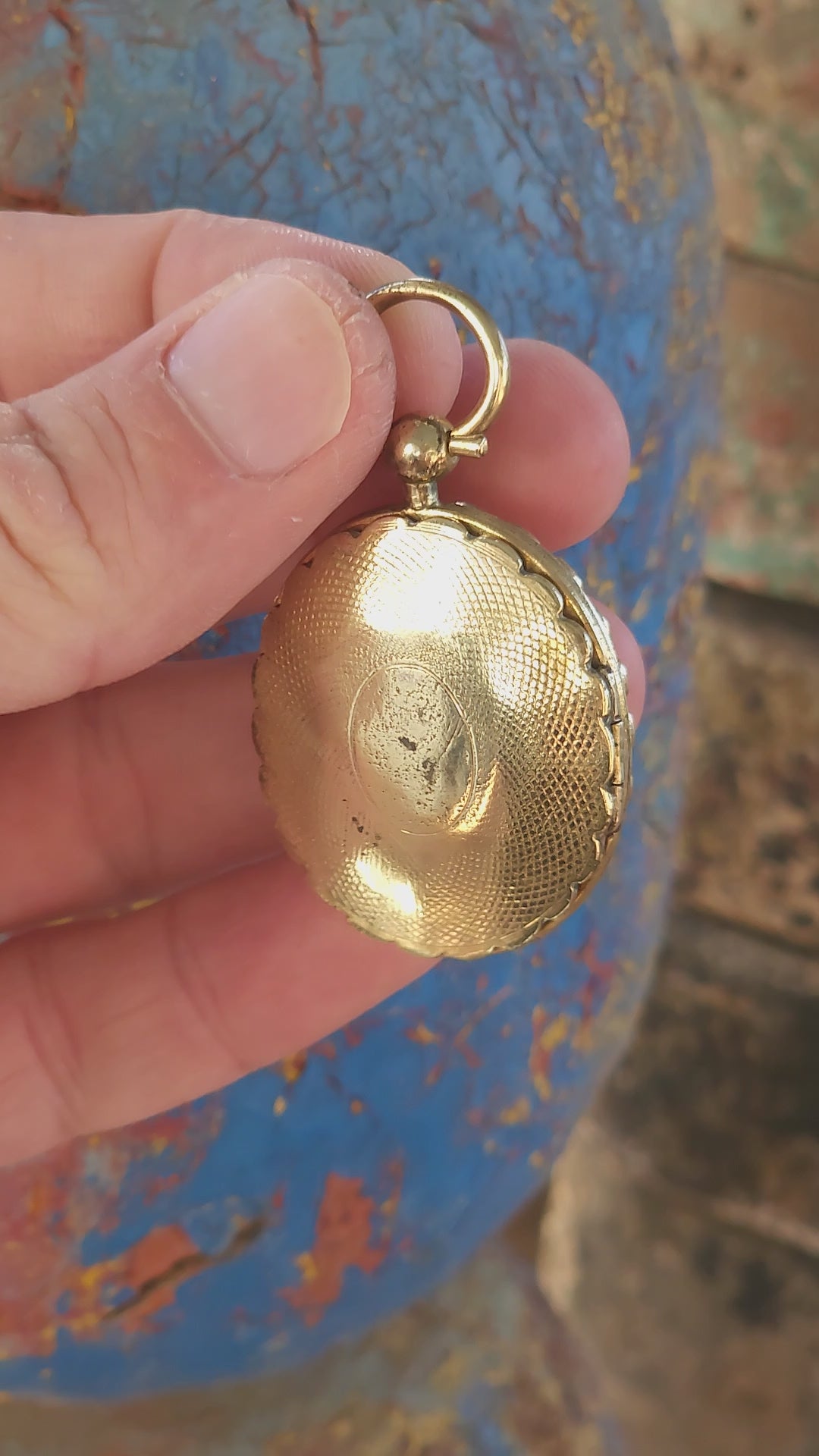 The locket is crafted from Pinchbeck, a special gold substitute alloy developed in the early 18th century by Christopher Pinchbeck. This material was highly prized during the Georgian and Victorian eras for its gold-like appearance while being more affordable.