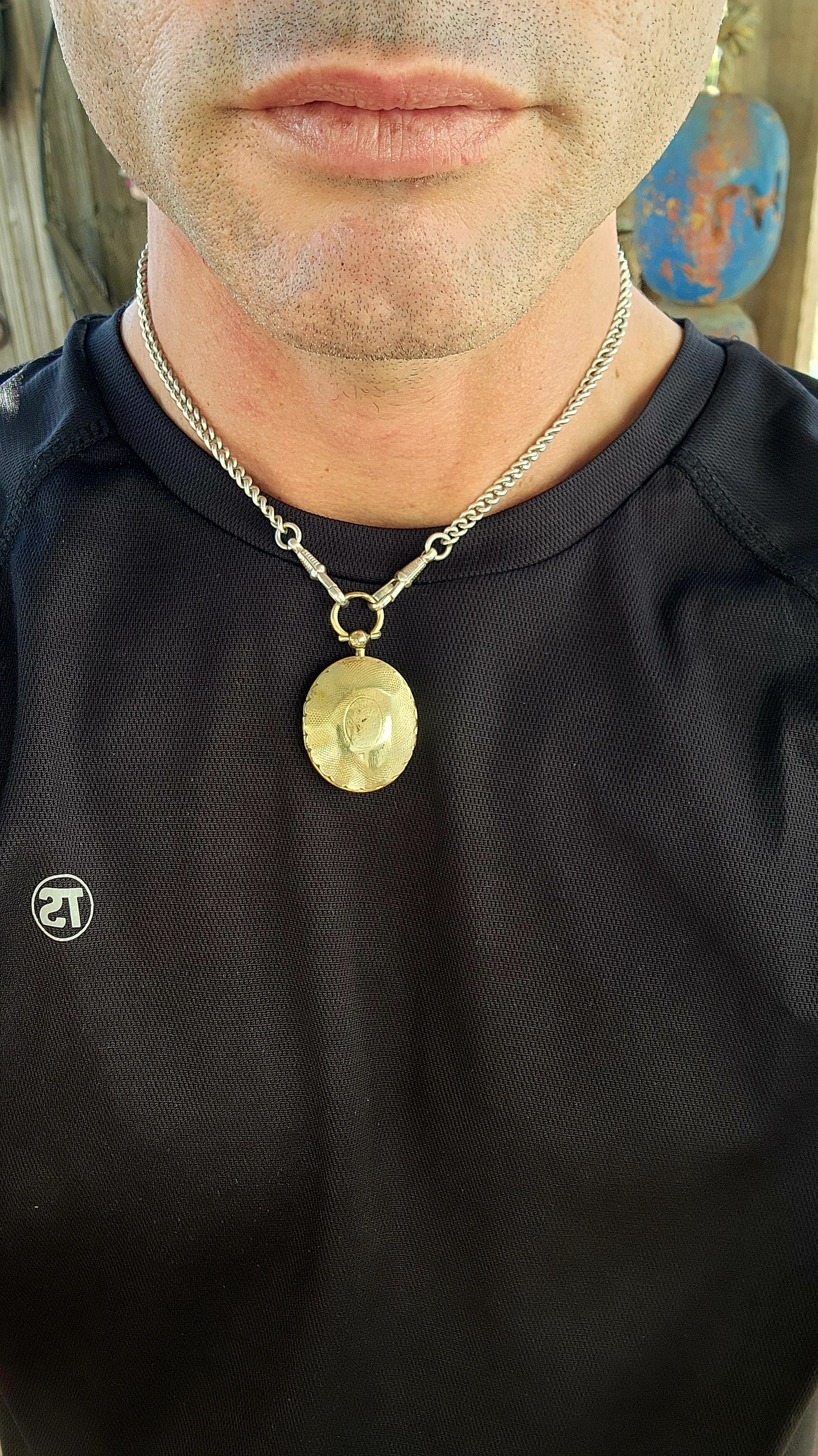 The locket is generous in size and oval-shaped, making it an eye-catching piece that allows for meaningful keepsakes to be stored inside.