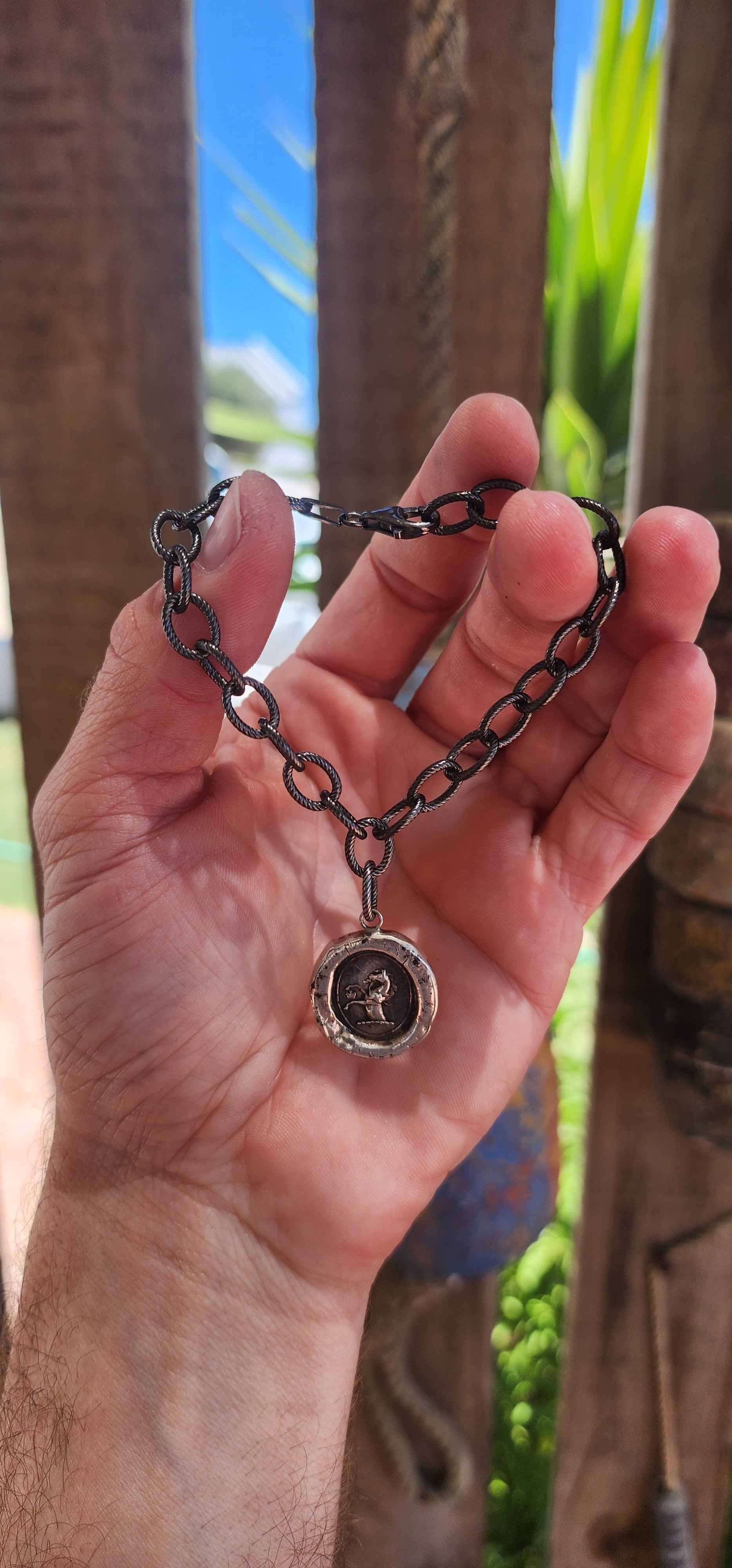 Horses have long been associated with nobility, loyalty, and freedom, making this bracelet and pendant a meaningful accessory. Whether as a reminder of inner strength or a celebration of personal freedom, this piece speaks to those who cherish symbols with depth and history. The wax seal-inspired design adds a touch of mystery and nostalgia, as though this piece has been passed down through generations.