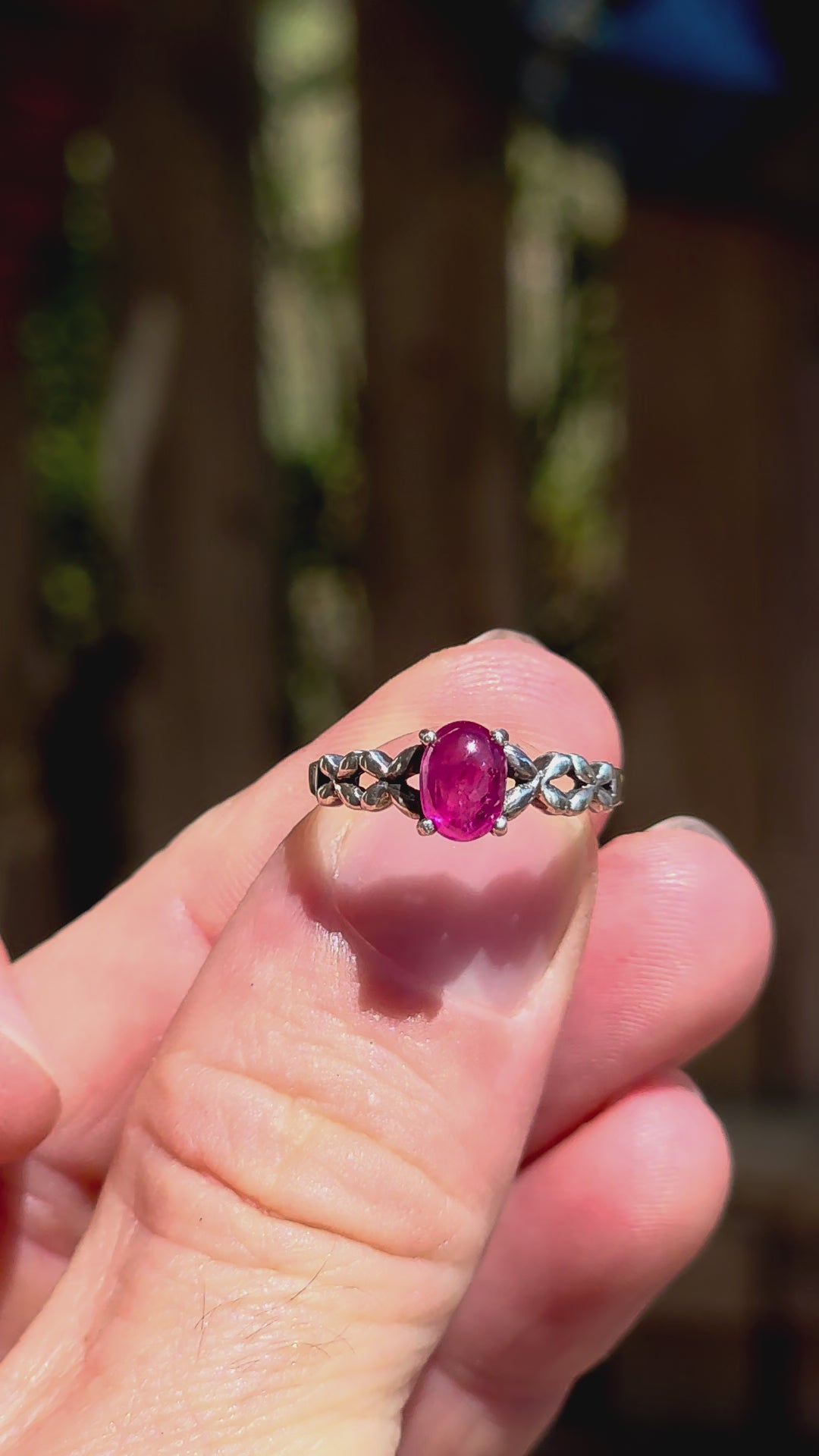 Sterling Silver Ruby Cabochon Solitaire Ring.