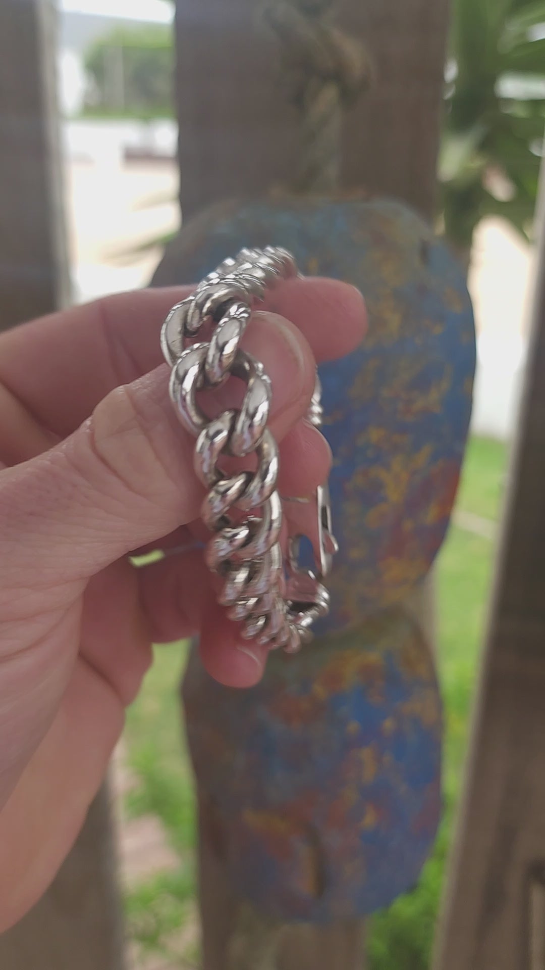 This chunky unisex Italian-made sterling silver bracelet is pure power and polish in one irresistible piece! Crafted with bold, hollow rounded tube Cuban curb links, it graduates gracefully from large, statement-sized links at the centre to slightly smaller ones toward the clasp — giving it that perfect balance of weight and wearability.