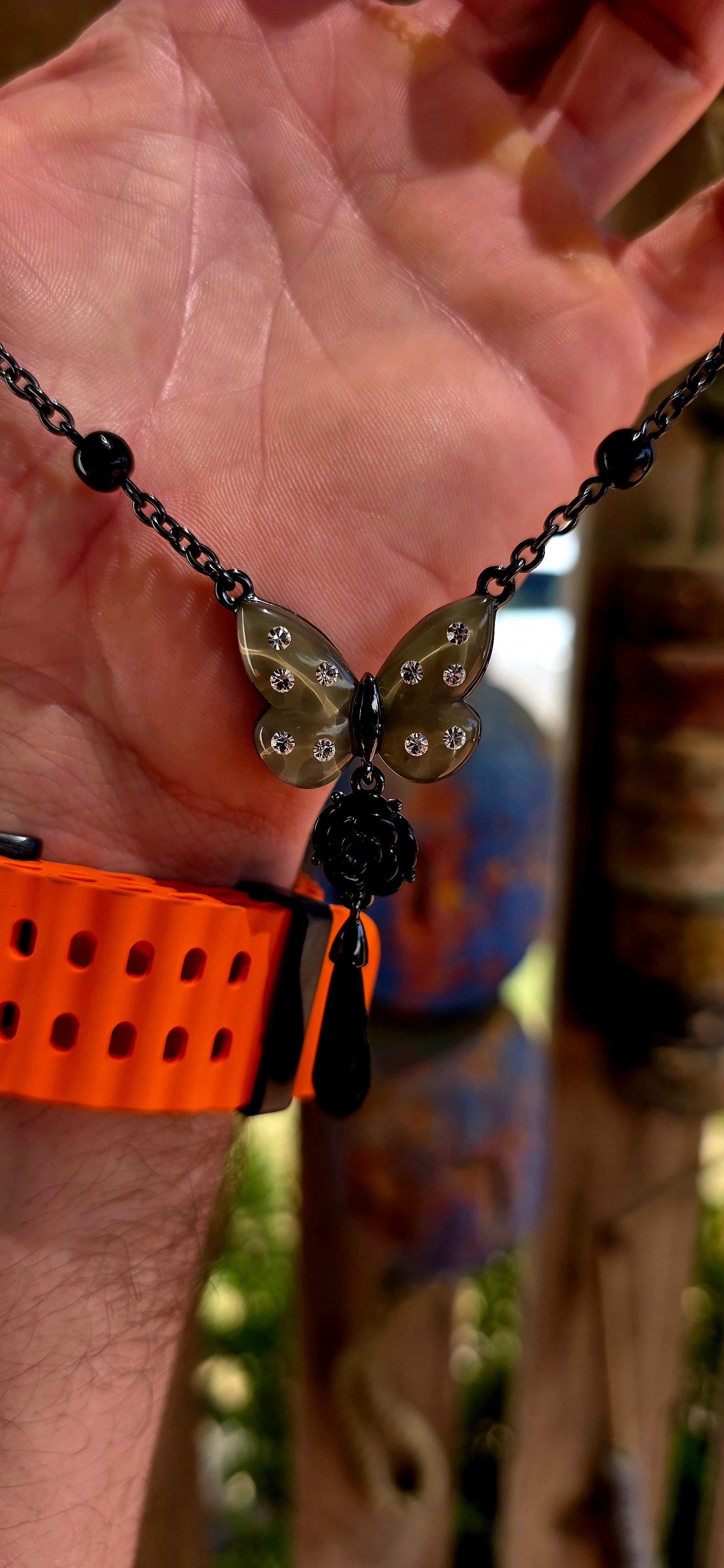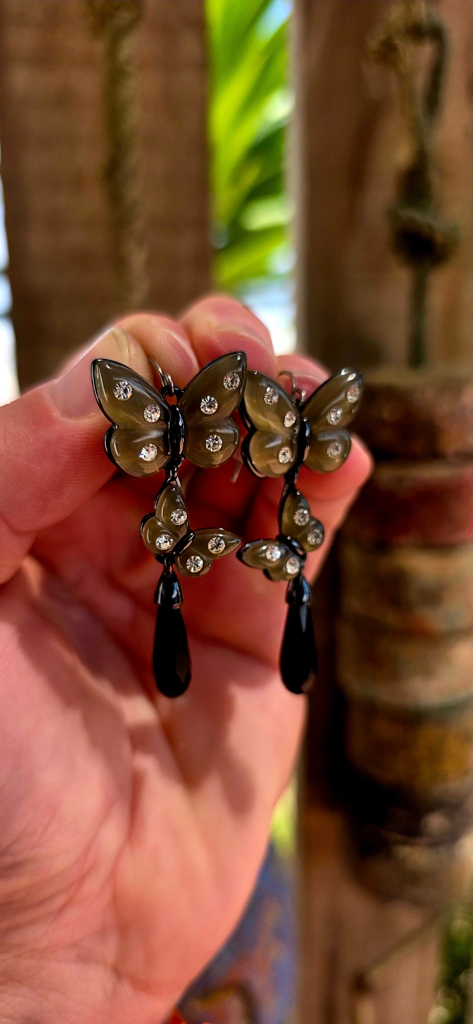 This high-quality costume jewellery set carries a distinct gothic undertone, blending delicate butterfly symbolism with dark, almost Victorian-inspired elements.
